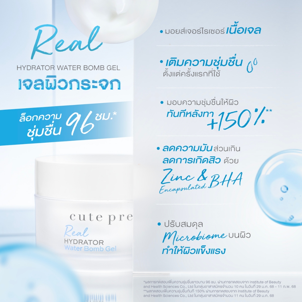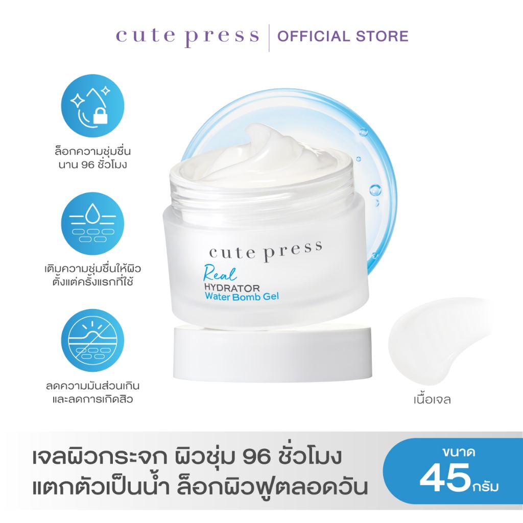 CUTE PRESS REAL HYDRATOR WATER BOMB GEL เจลผิวก ระจก ผิวชุ่ม 96 ชั่วโมง แตกตัวเป็นน้ำ ล็อกผิวฟูตลอดวัน