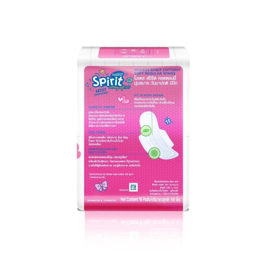 โมเดส ผ้าอนามัย คอตตอนนี่ซอฟ สลิมสปิริต มีปีก 16 ชิ้น x 4 Modess Sanitary Pads Cottony Soft Slim Spirit 16pcs. x 4