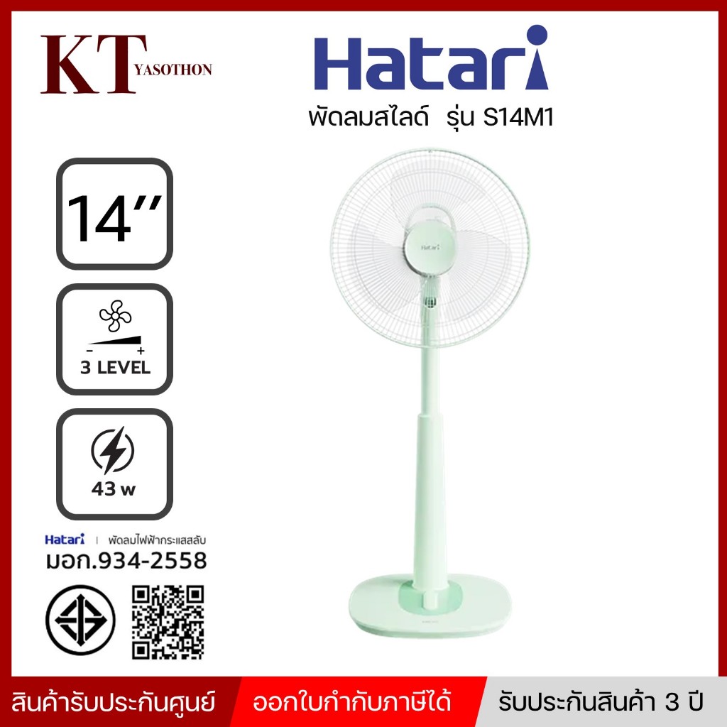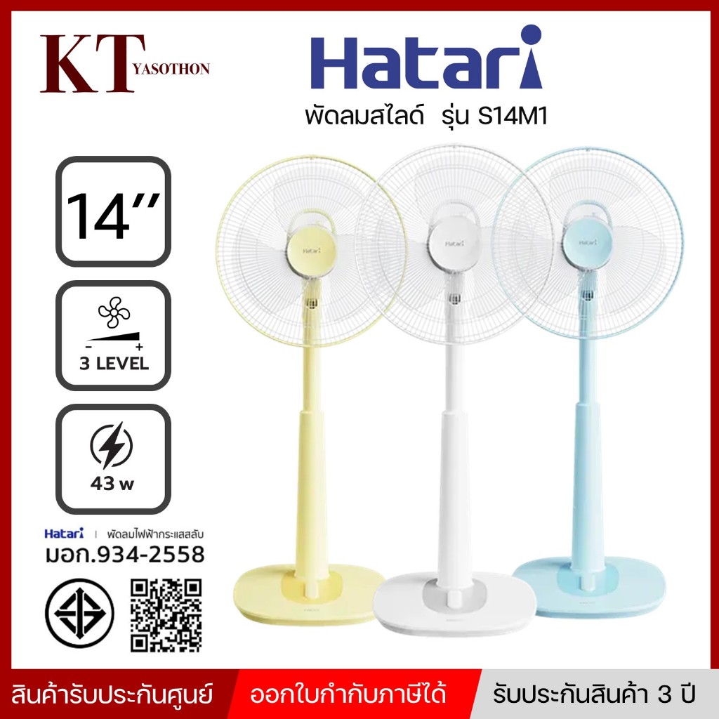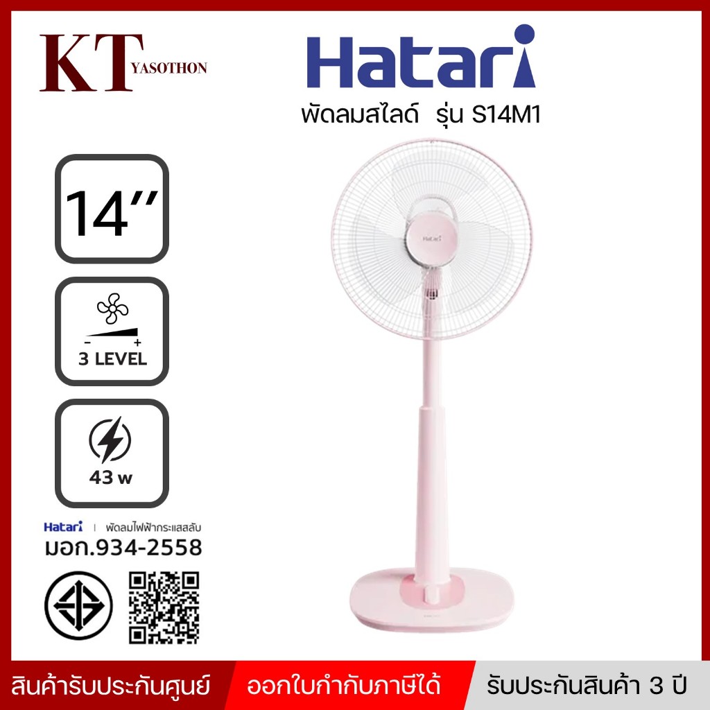 รุ่นใหม่ พัดลมสไลด์ ขนาด 14 นิ้ว HATARI รุ่น S14M1 คละสี พร้อมส่ง แจ้งสีได้