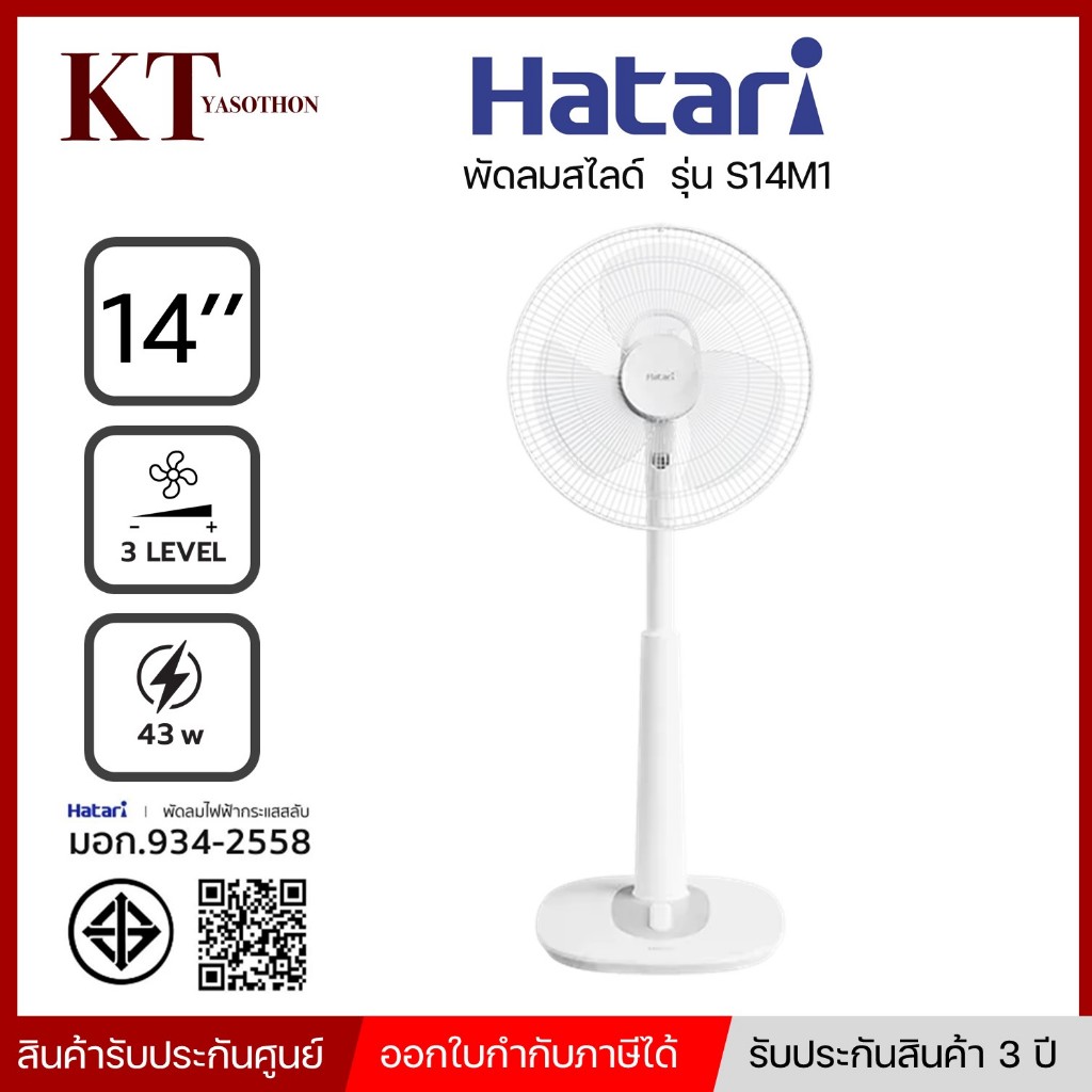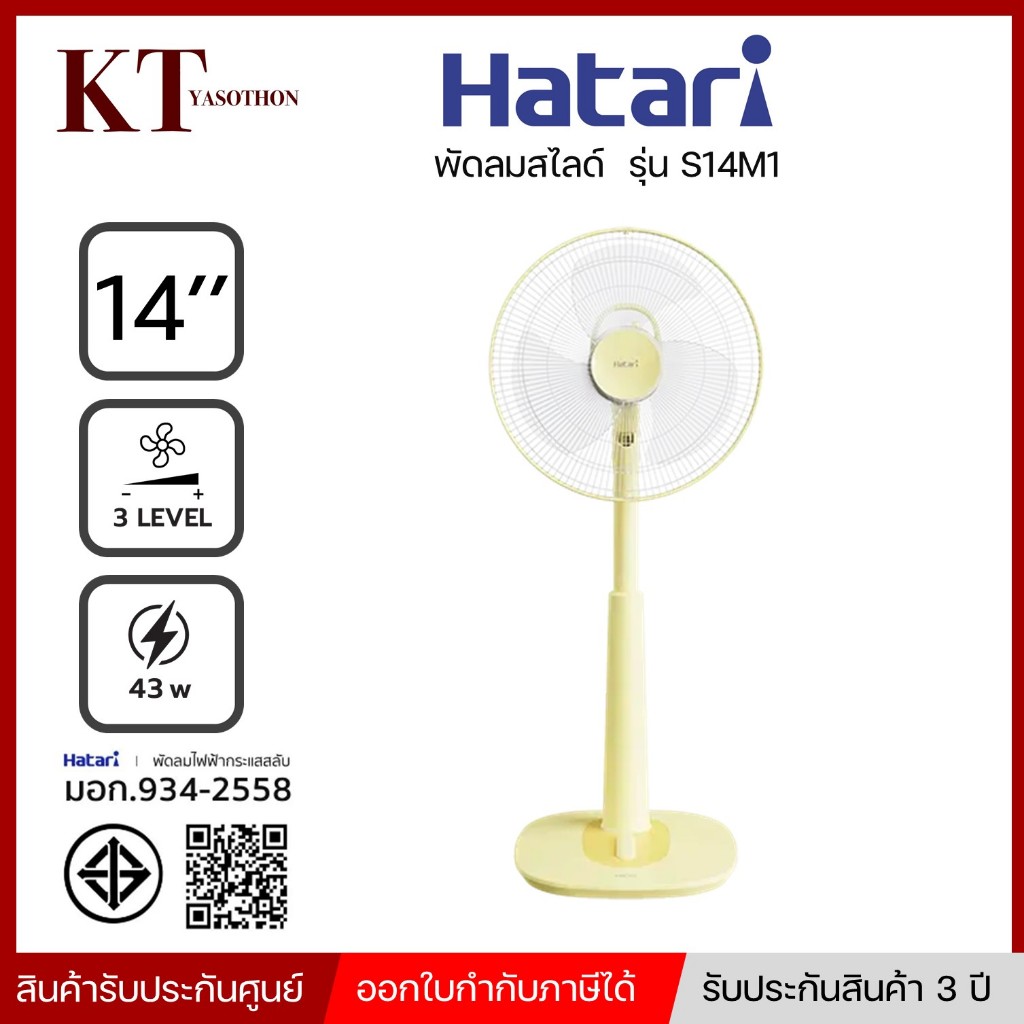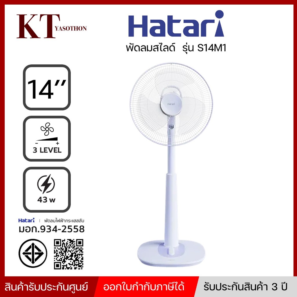 รุ่นใหม่ พัดลมสไลด์ ขนาด 14 นิ้ว HATARI รุ่น S14M1 คละสี พร้อมส่ง แจ้งสีได้