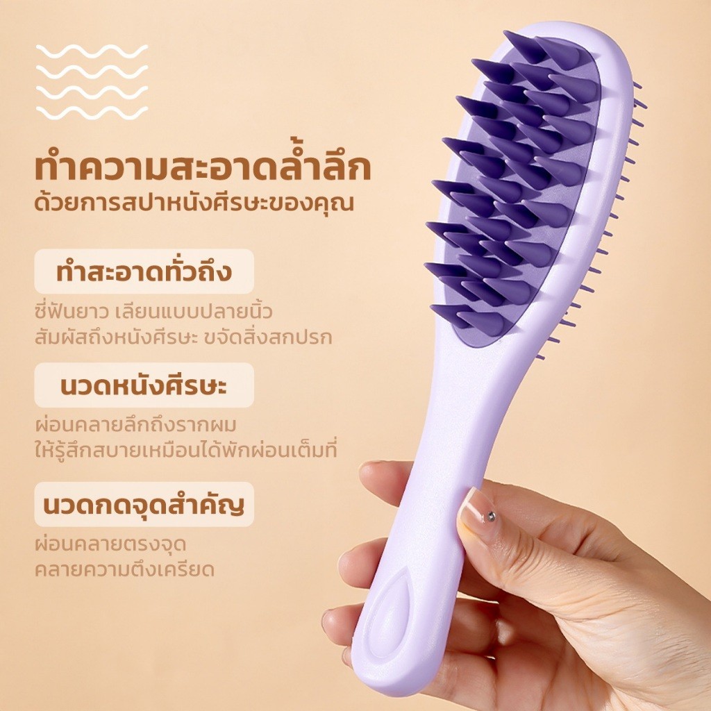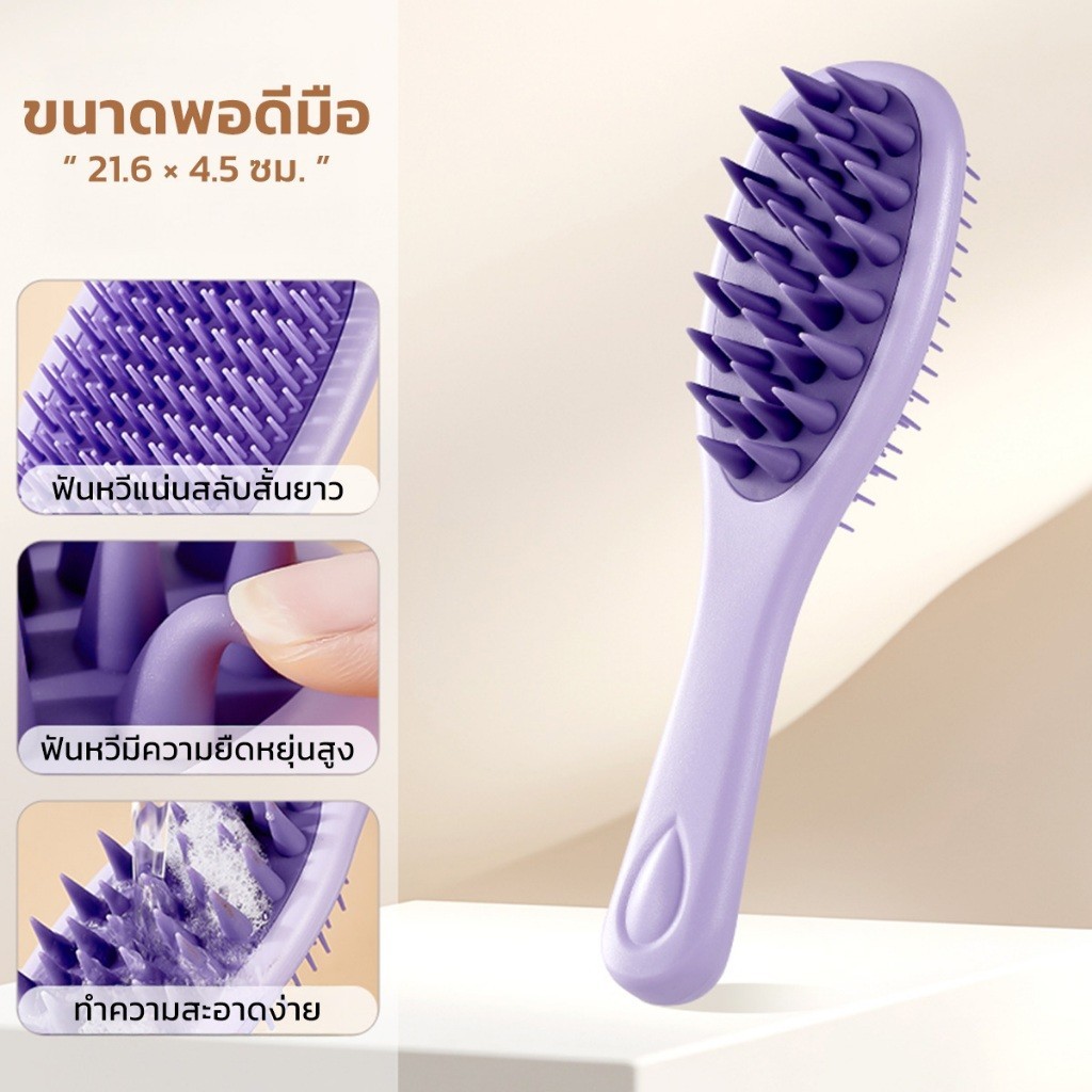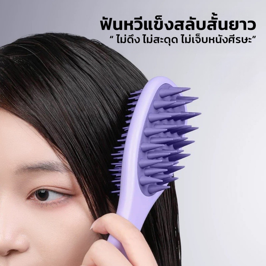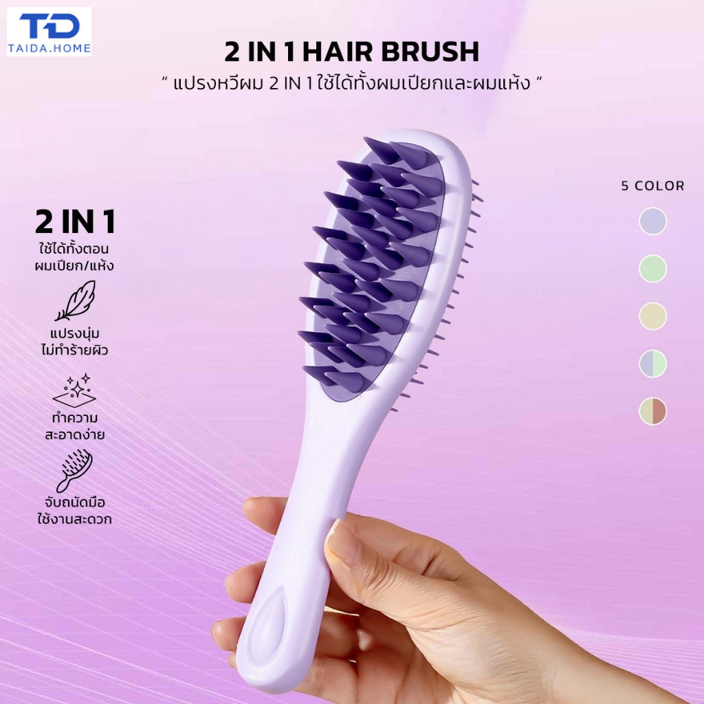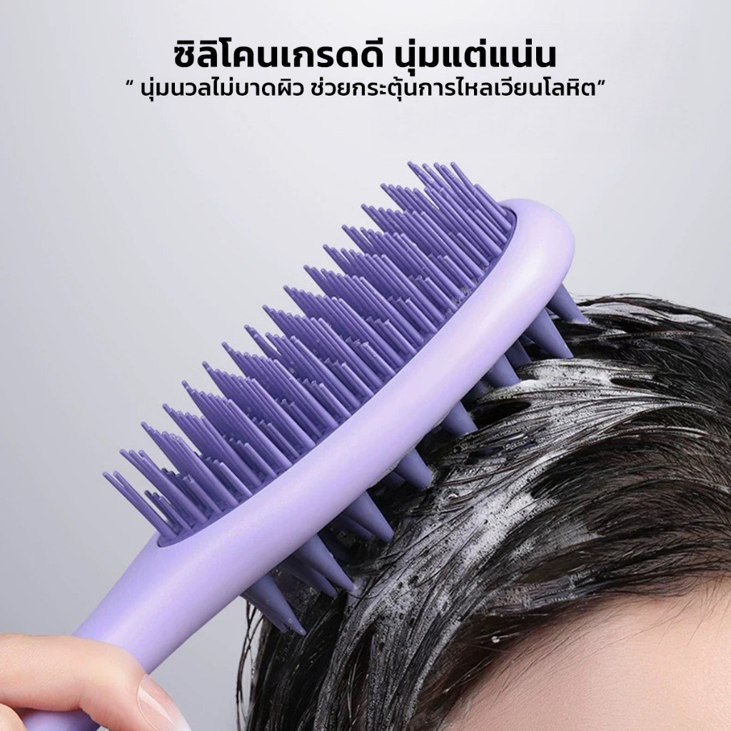 แปรงสระผม Scalp Brush แปรงสระหวีผม 2in1 ใช้ได้ทั้ง เปียกและแห้ง แปรงซิลิโคนเนื้อนุ่ม สระผมให้สะอาดยิ่งขึ้น