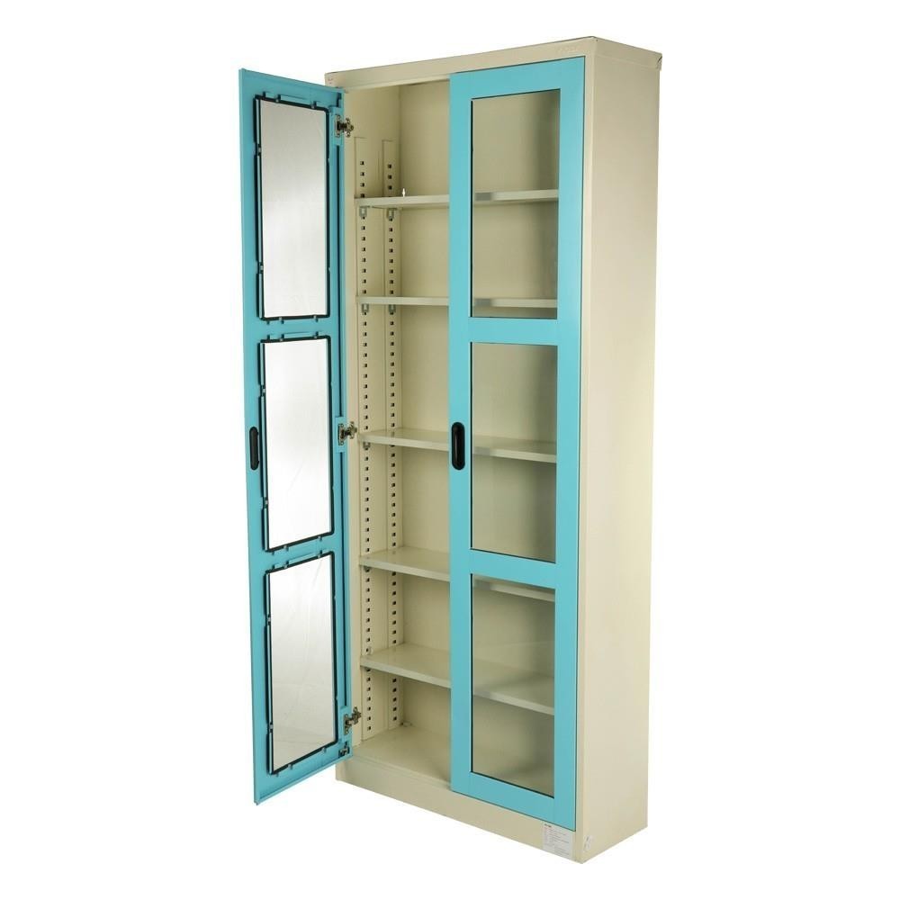 [จัดส่งพร้อมประกอบ] KIOSK ตู้เหล็กสูงบานเปิดกระจก MAX-052 DG/BO สีฟ้า จัดส่งโดย HomePro
