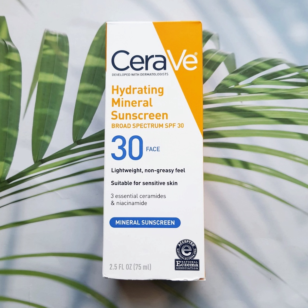 75% Sale!!! EXP.09/25 (CeraVe®) Hydrating Mineral Sunscreen SPF 30, 50 Face 75 ml ครีมกันแดด สำหรับผิวหน้า