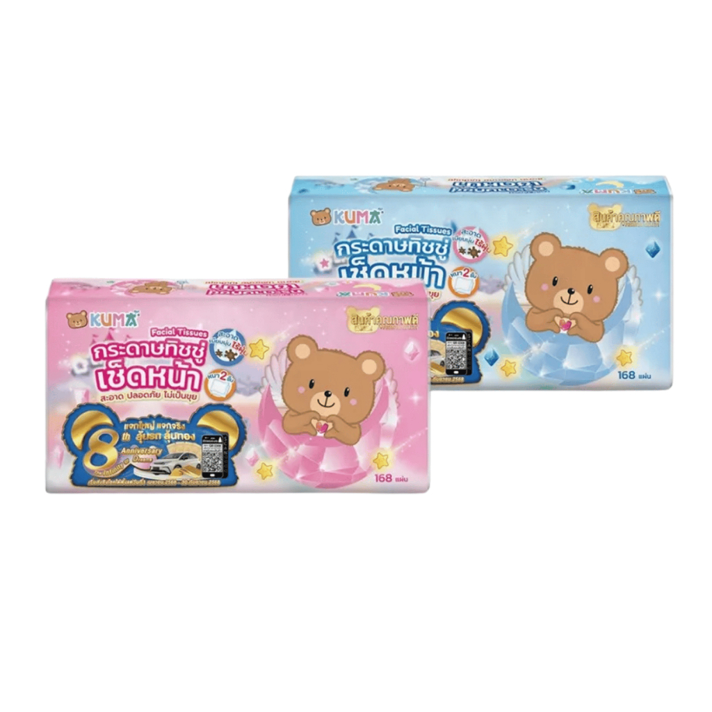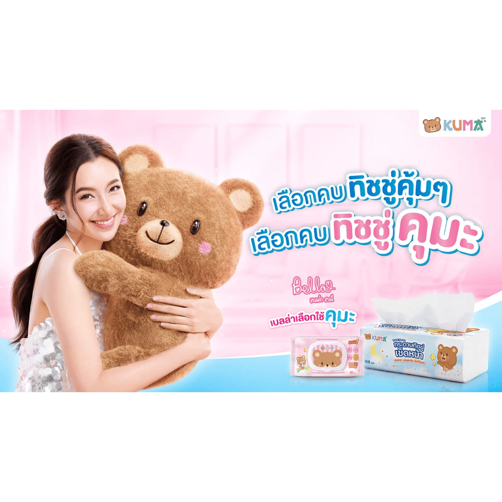 Kuma กระดาษทิชชู่เช็ดหน้า 4 แพ็ค (รวม 20 ห่อ x168 แผ่น) ผลิตจากเยื่อกระดาษบริสุทธิ์ 100% เนื้อนุ่ม 2 ชั้น หนา ไร้ฝุ่น