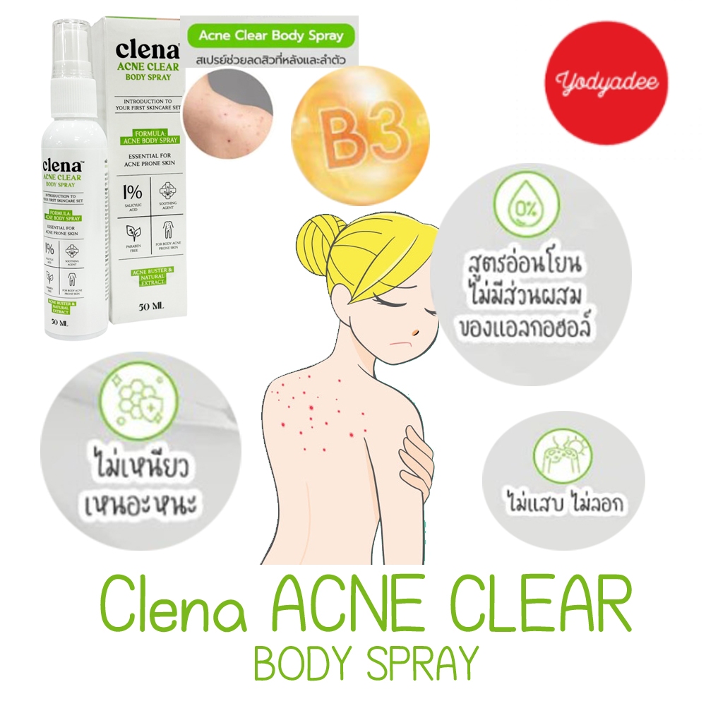 Clena สเปรย์ช่วยลดสิวที่หลังและลำตัว Acne Clear Body Spray 50ml 68212