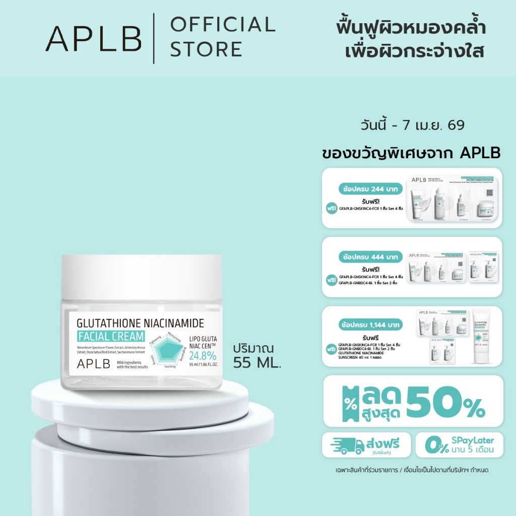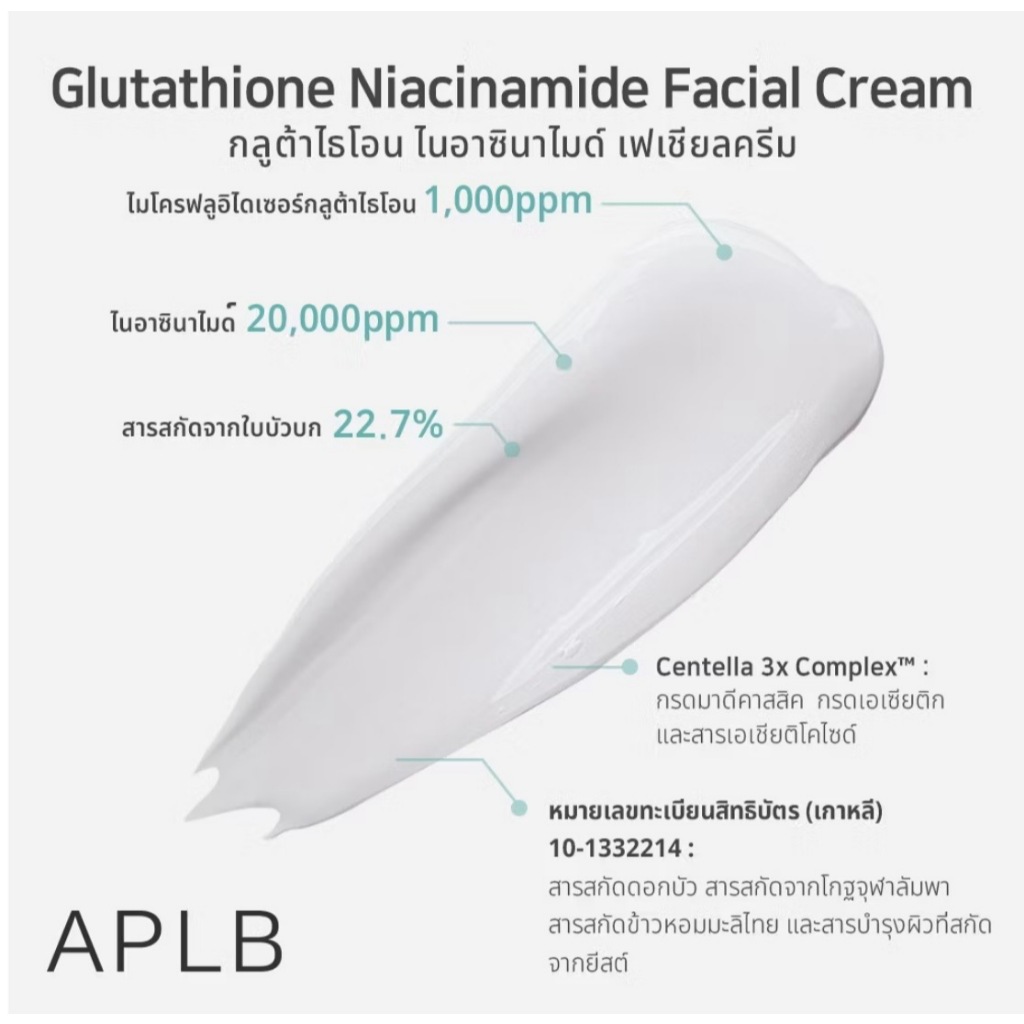 APLB [หน้าขาวกระจ่างใส] กลูต้าไธโอน ครีมทาหน้า Glutathione Niacinamide Facial Cream ปริมาณ 55 ml
