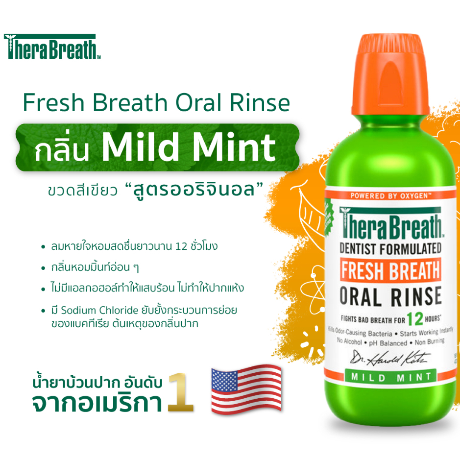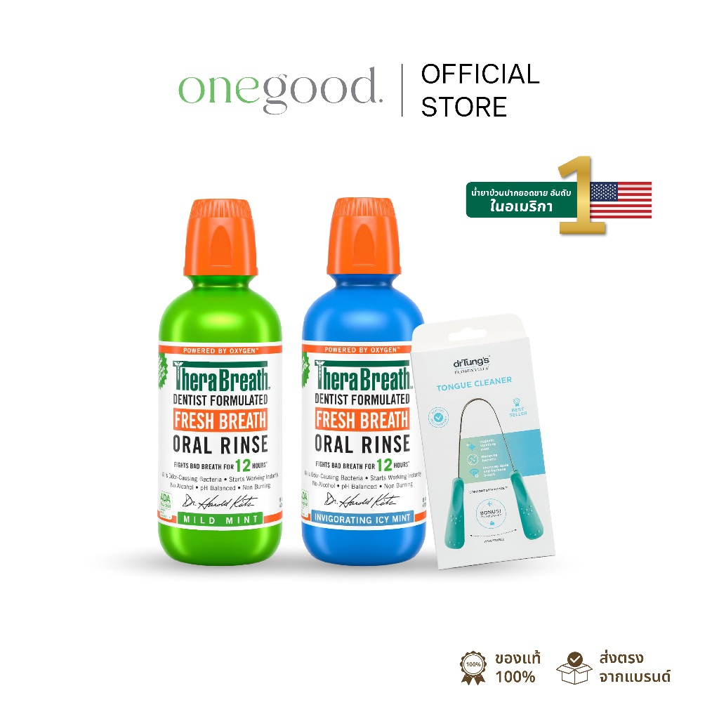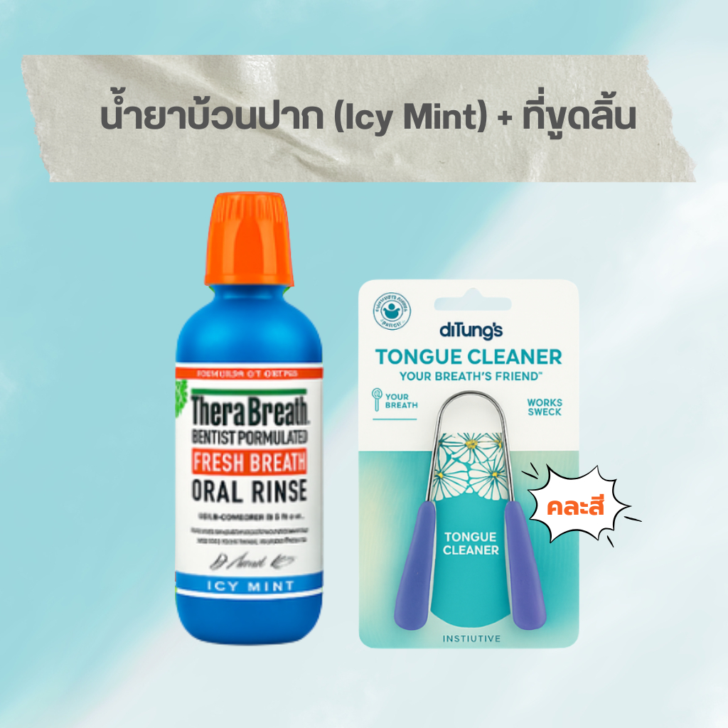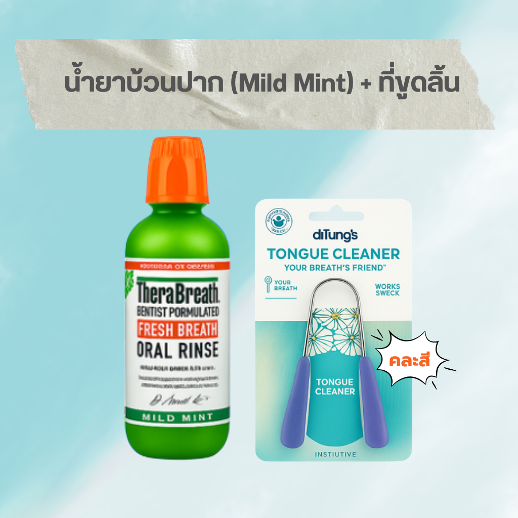 [ แพ็คคู่สุดคุ้ม ] น้ำยาบ้วนปาก TheraBreath + ที่ทำความสะอาดลิ้น Tongue Cleaner (คละสี) | จบเรื่องกลิ่นปาก