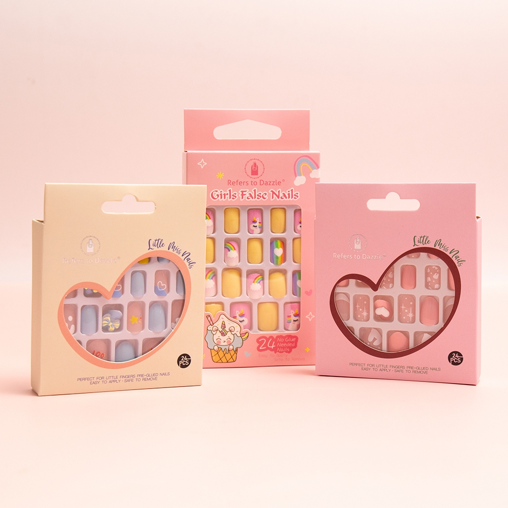 ชุดเล็บปลอมสำเร็จรูปสำหรับเด็กดีไซน์น่ารักสดใส บรรจุ 24 ชิ้น