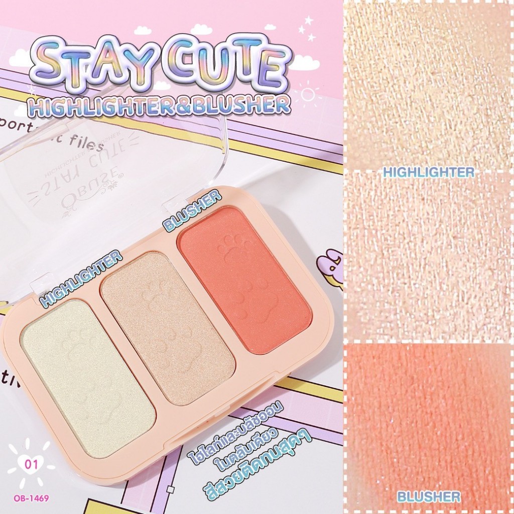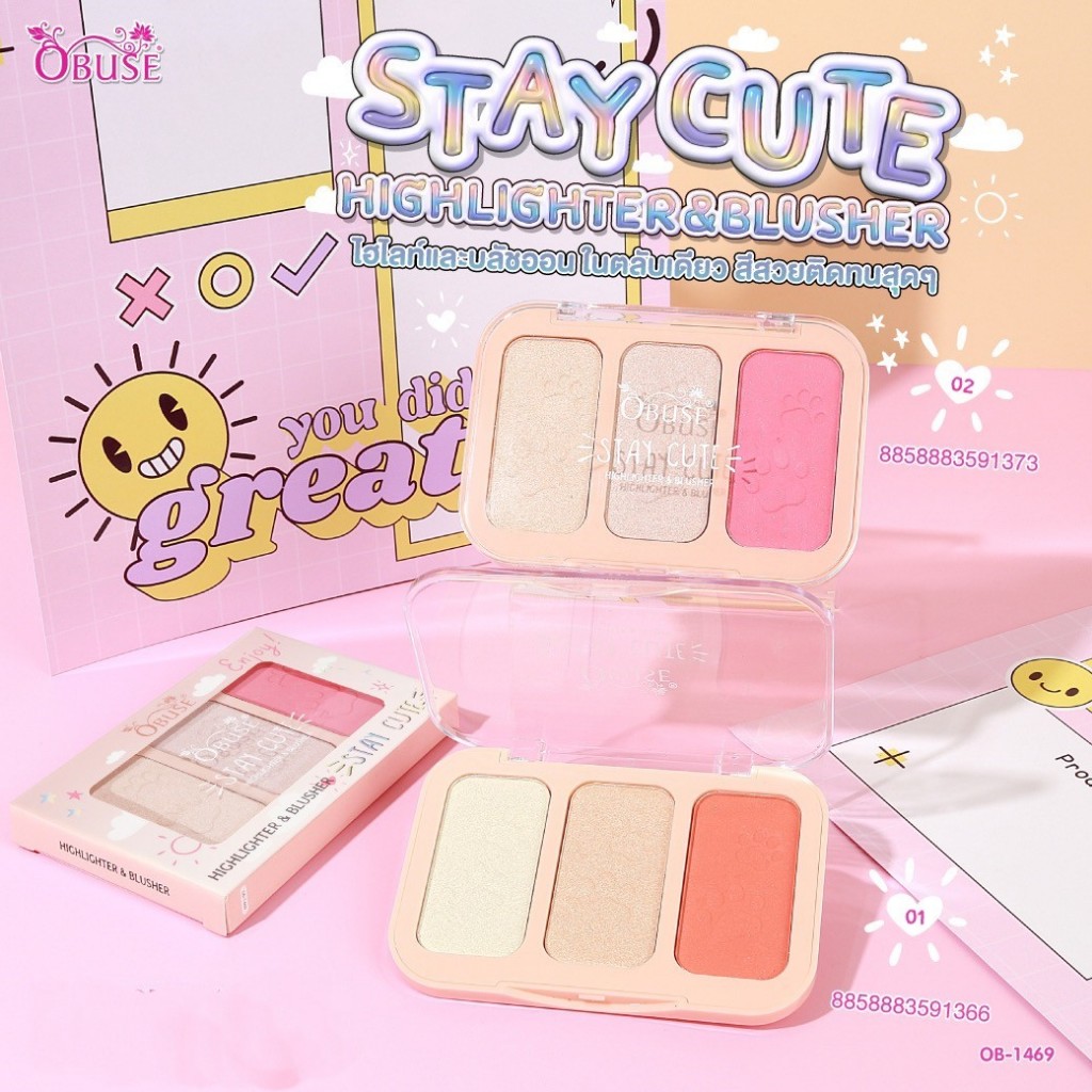 OB-1469 Obuse Stay Cute hlighter & Blusher โอบิวซ์ สเตย์ คิ้วท์ ไฮไลท์เตอร์ แอนด์ บลัชเชอร์ เม็ดสีคมชัด ติดทนนานสุดๆ