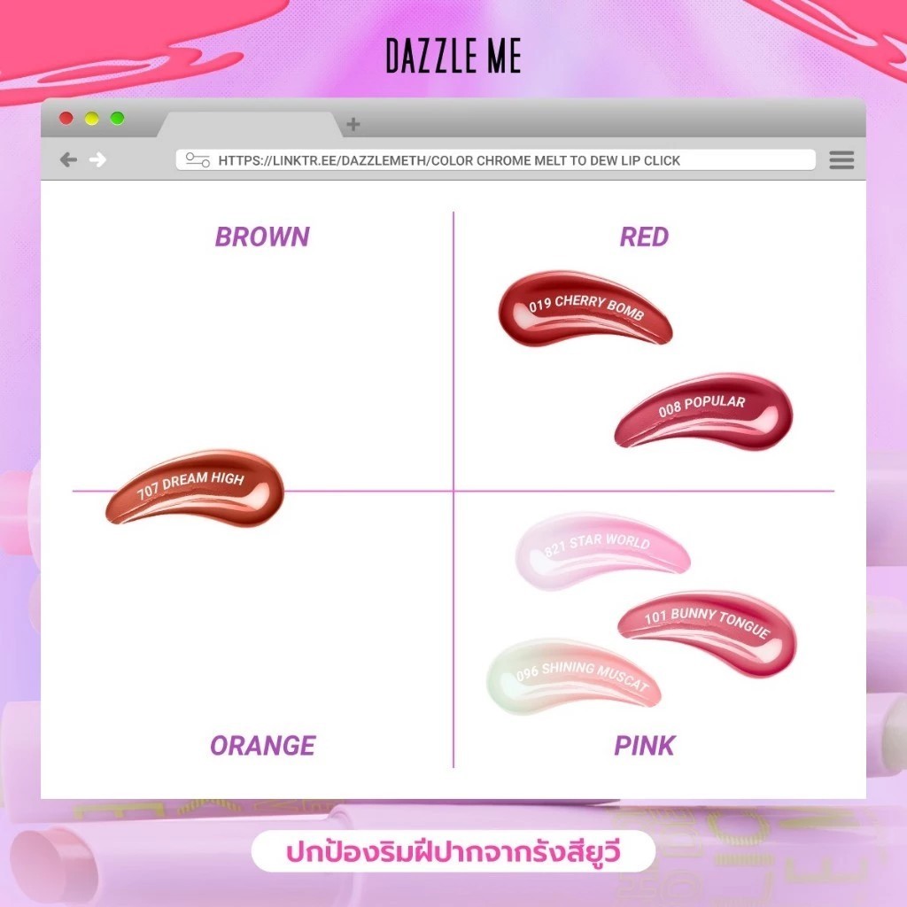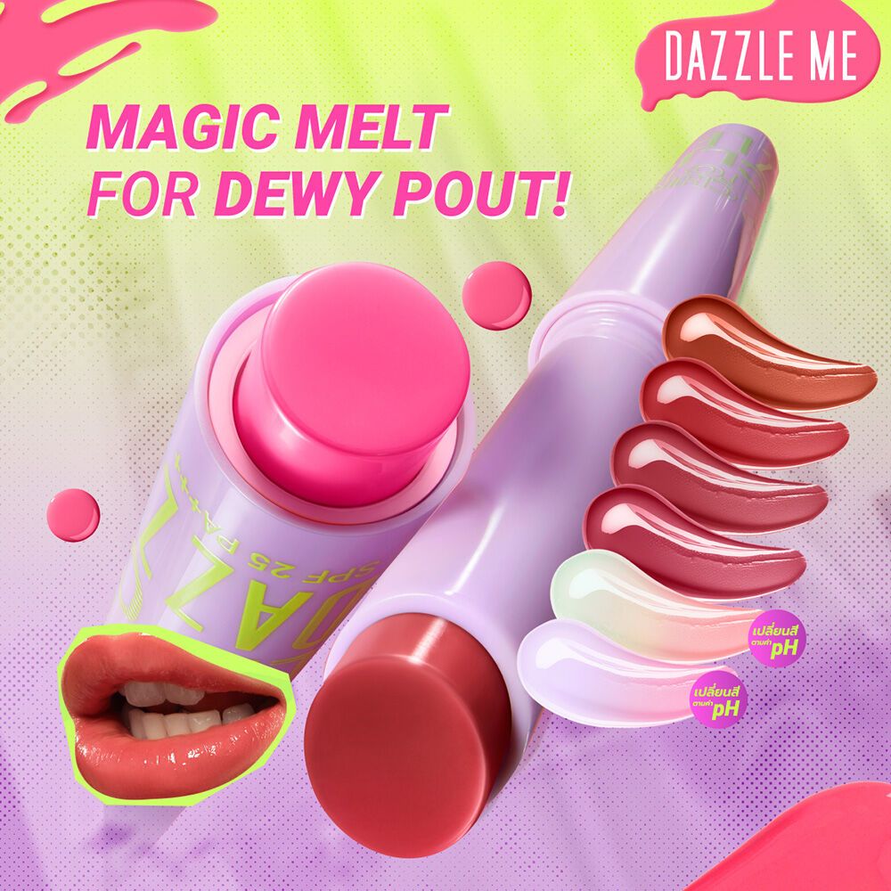 Dazzle Me Color Chrome Melt to Dew Lip Click แดซเซิล มี ลิป Click 2 กรัม ให้ริมฝีปากอวบอิ่ม ฉ่ำวาว