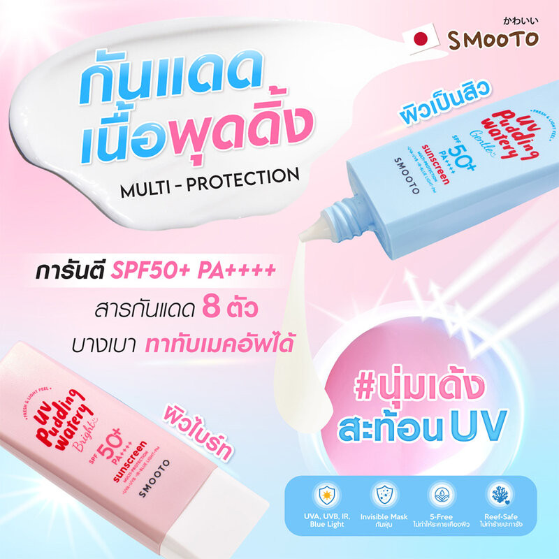 Smooto Japan UV Pudding Watery Sunscreen สมูทโตะ กันแดดเนื้อพุดดิ้ง บางเบา 32g (Gentle/Bright)
