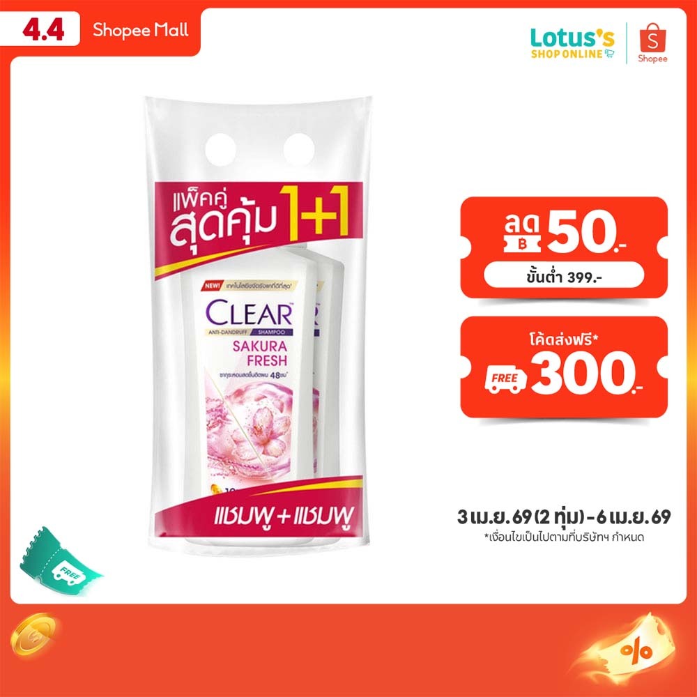 เคลียร์ แชมพูขจัดรังแค ซากุระ เฟรช 370 มล.X2 CLEAR SHAMPOO SAKURA FRESH370ML.TWINPACK