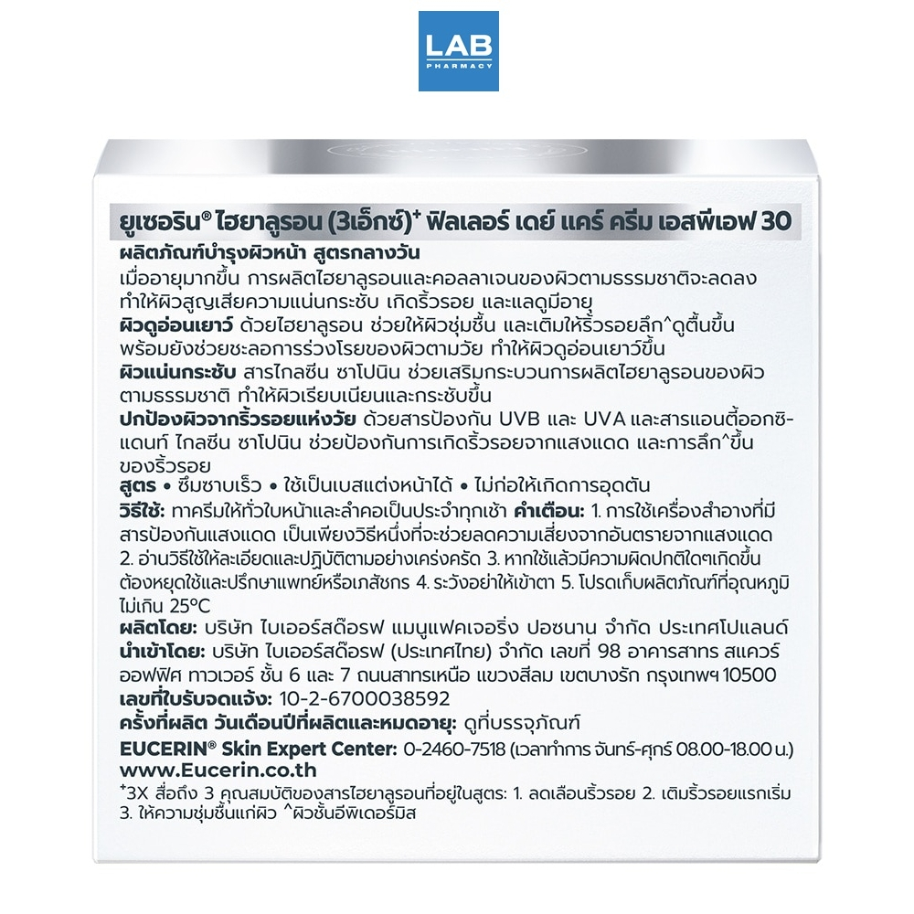 Eucerin Hyaluron (3X) Filler Day Care Cream SPF30 20 ml. ยูเซอริน ไฮยาลูรอน (3เอ็กซ์) ฟิลเลอร์ เดย์ แคร์ ครีม เอสพีเอฟ
