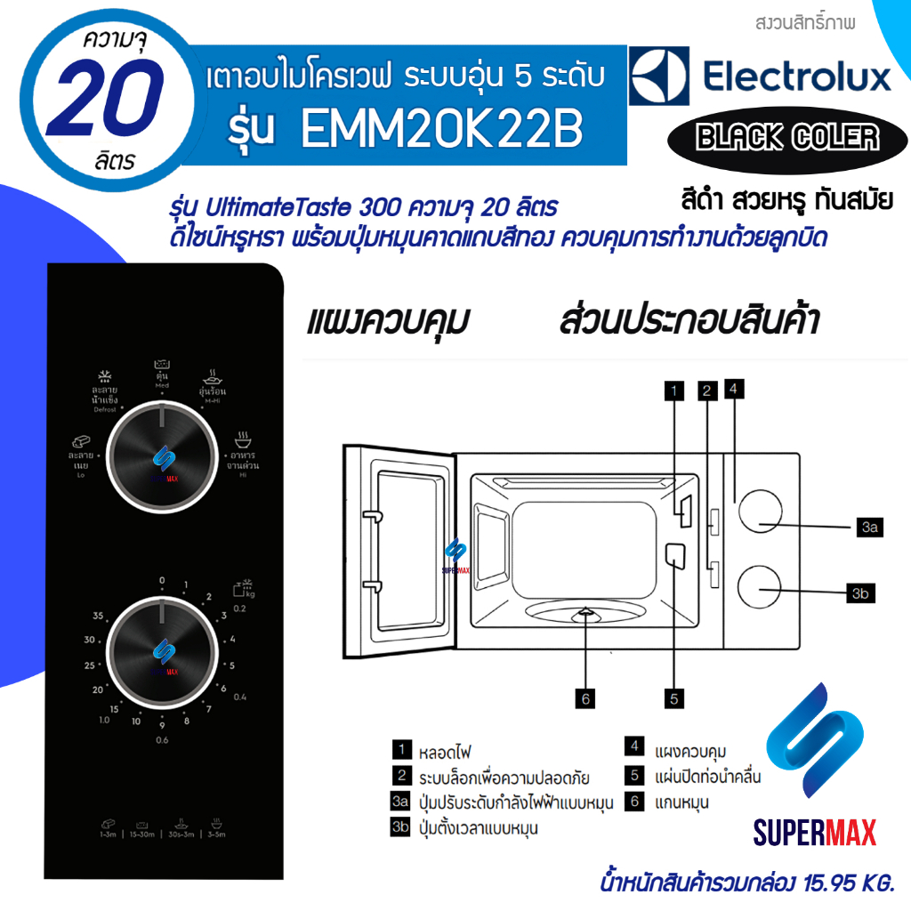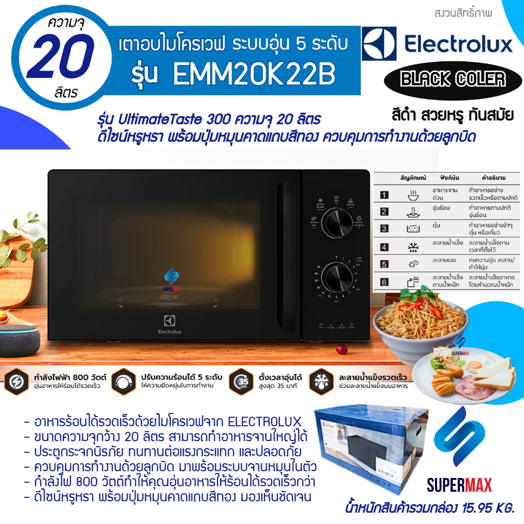 ELECTROLUX เตาไมโครเวฟ 20ลิตร รุ่น EMM20K22B (เคลือบ)กำลังไฟ 800W รับประกันเครื่อง 2 ปี