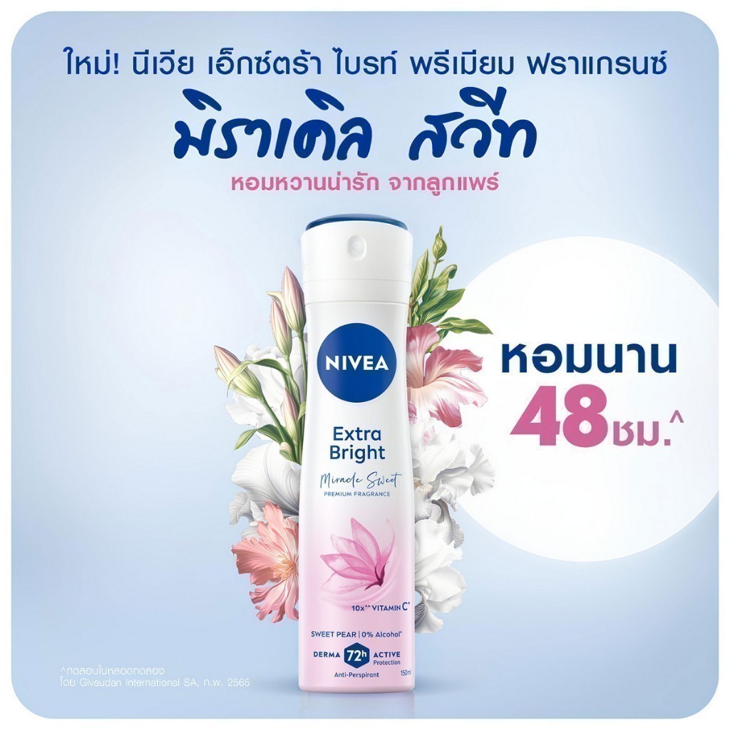 นีเวีย เอ็กซ์ตร้า ไบรท์ มิราเคิล สวีท พรีเมียม ฟราแกรนซ์ สวีท แพร์ สเปรย์ 150 มล. 2ชิ้น NIVEA