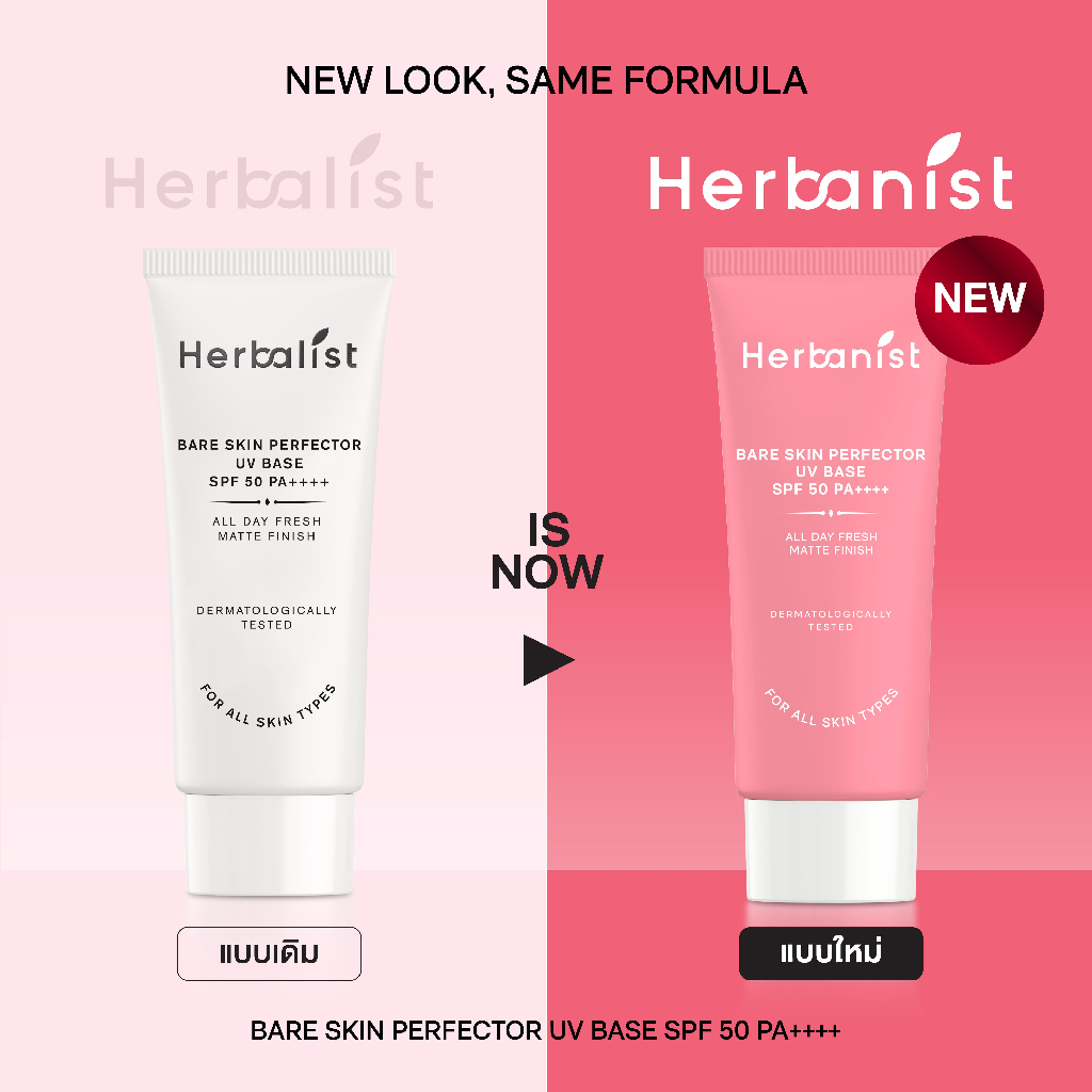 [1 แถม 1] กันแดดผิวเนียน: Herbanist(formerly Herbalist) เฮอบานิสท์ กันแดดโทนอัพ Bare Skin Perfector UV Base SPF50 PA++++