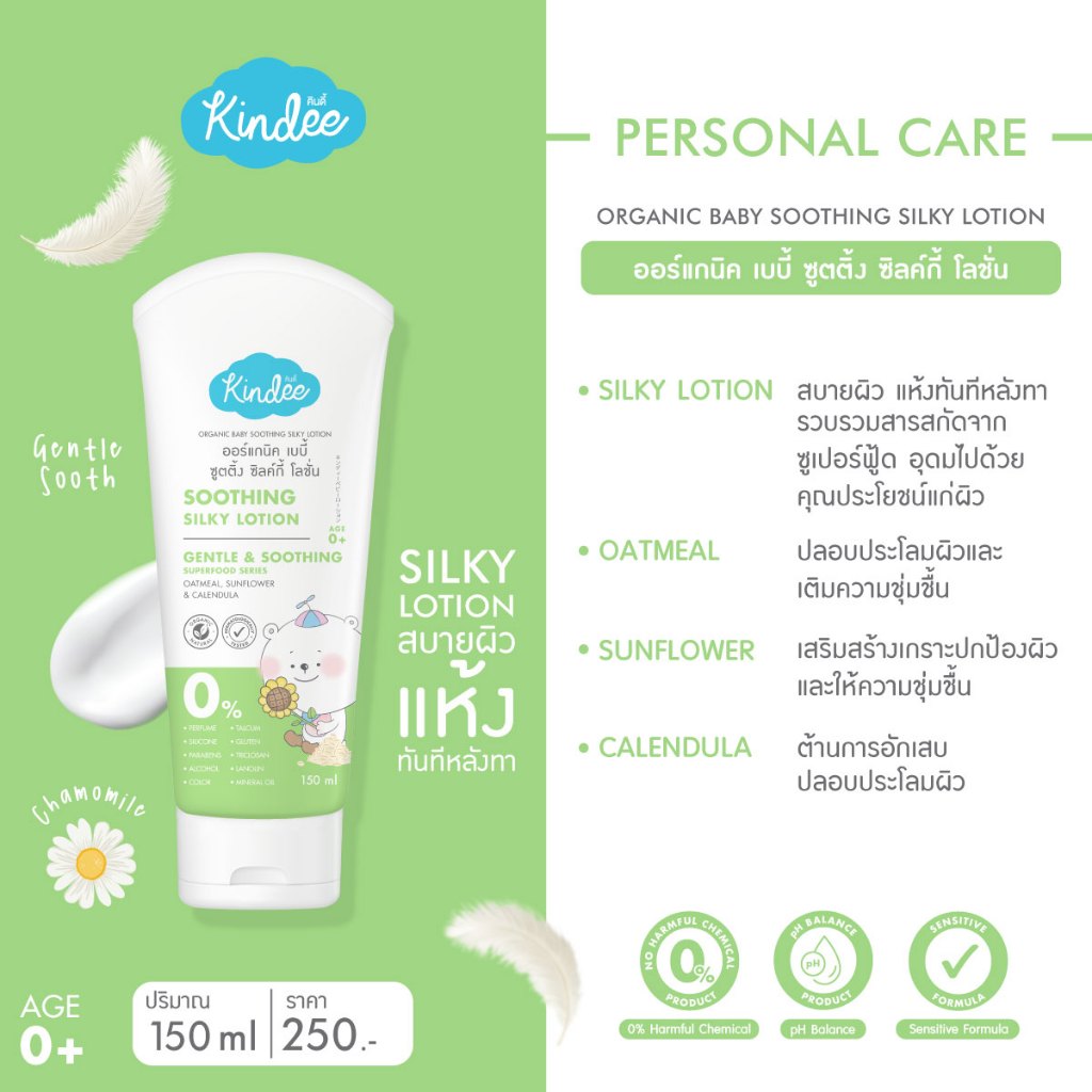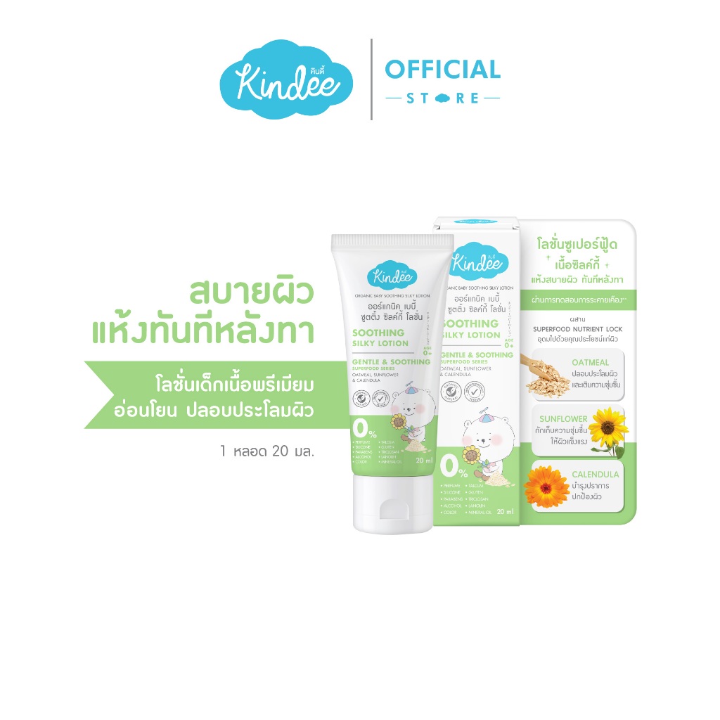 [ขนาดทดลอง] Kindee คินดี้ เบบี้ โลชั่นซุปเปอร์ฟู้ด สูตรซูตติ้ง ซิลค์กี้ โลชั่นเนื้อวิปครีม