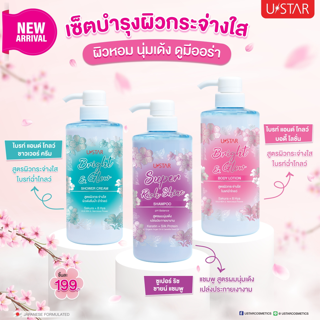 (1แถม1) Ustar Bright & Glow Shower Cream 500g / Super Rich Shine Shampoo 500g ยูสตาร์ อาบน้ำ / แชมพู