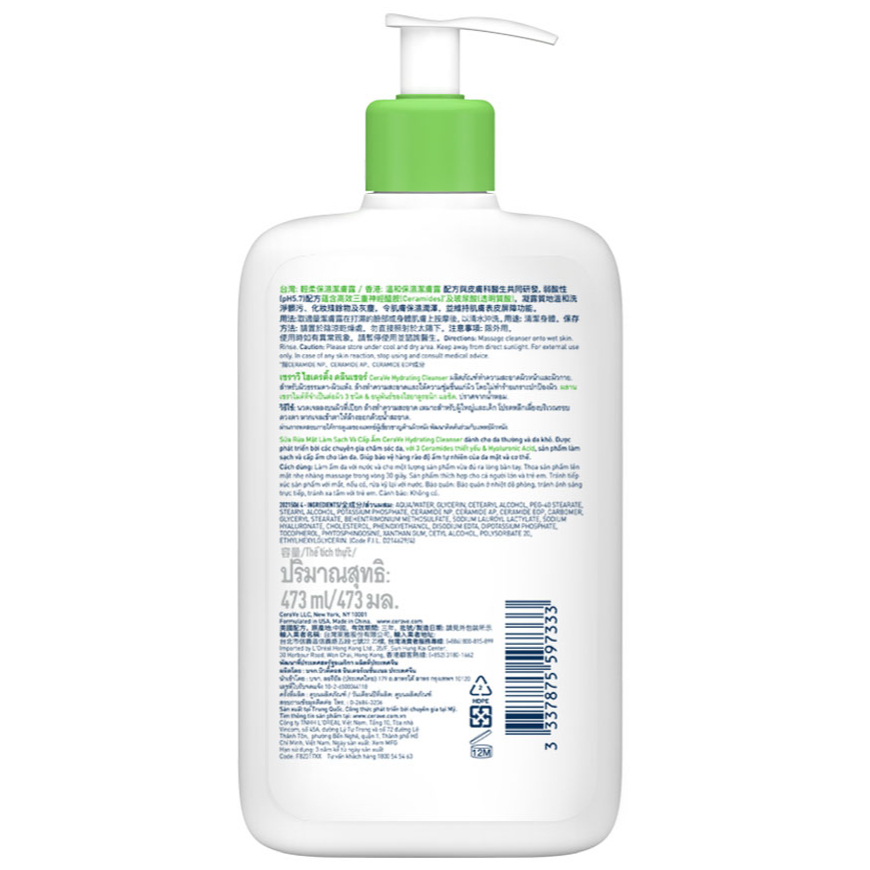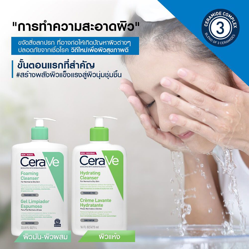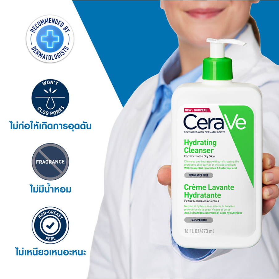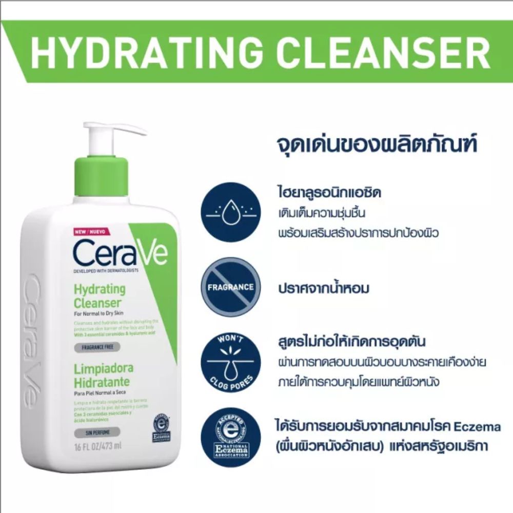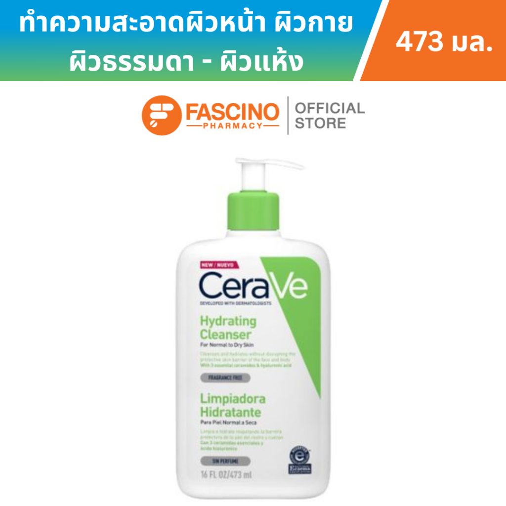 CeraVe Hydrating Cleanser ผลิตภัณฑ์ทำความสะอาดผิวหน้าและผิวกาย สูตรสำหรับผิวธรรมดา - ผิวแห้ง (473 มล.)