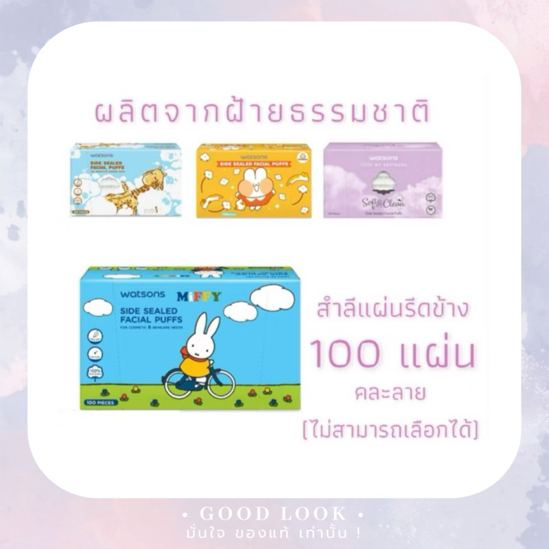 🐯🐤🐻1กล่อง Watsons คละลาย👍น่ารักมุมิ ใช้ดี สำลี Pure Cotton กล่อง 100 แผ่น