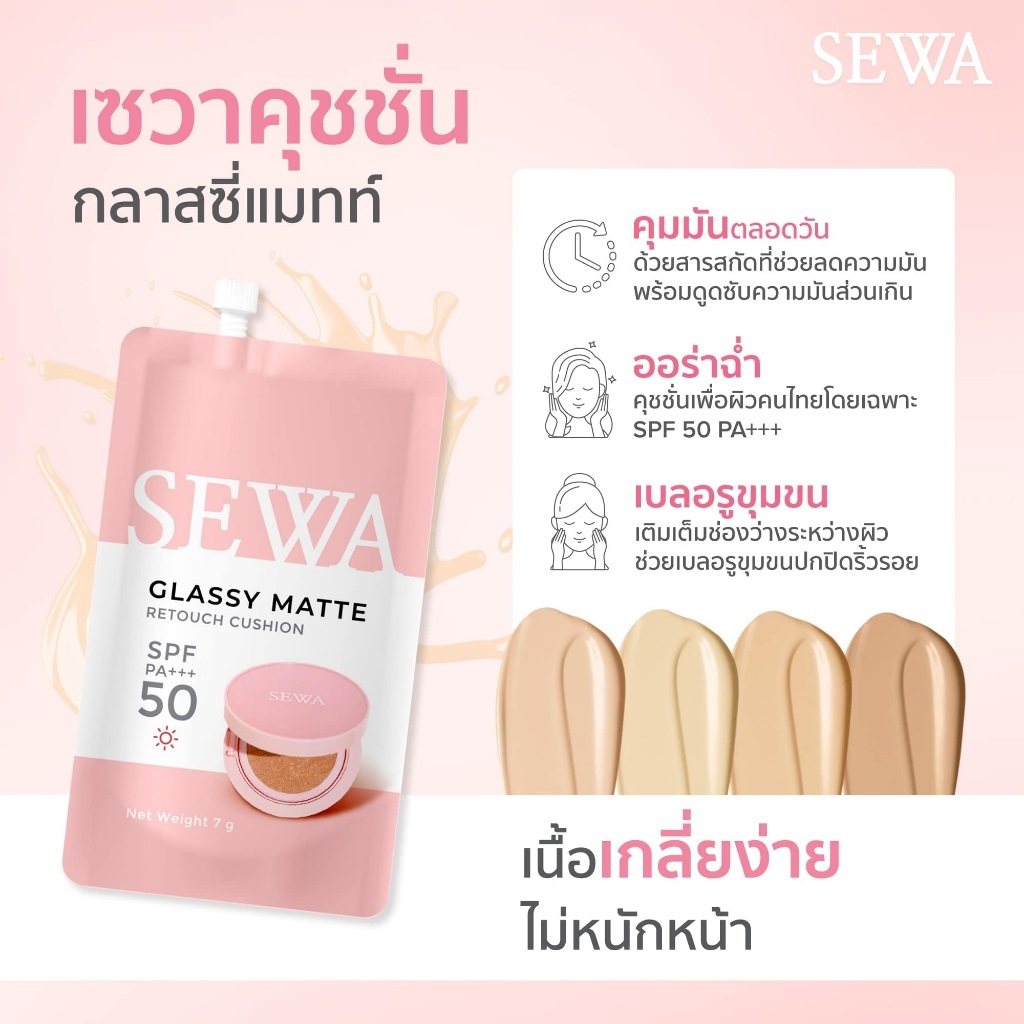 *SALE* Sewa เซวา คุชชั่น กลาสซี่ แมทท์ รีทัช เอสพีเอฟ 50 พีเอ+++ 7กรัม (1กล่อง6ซอง) Exp20/01/28 คุชชั่นแบบซอง รองพื้น