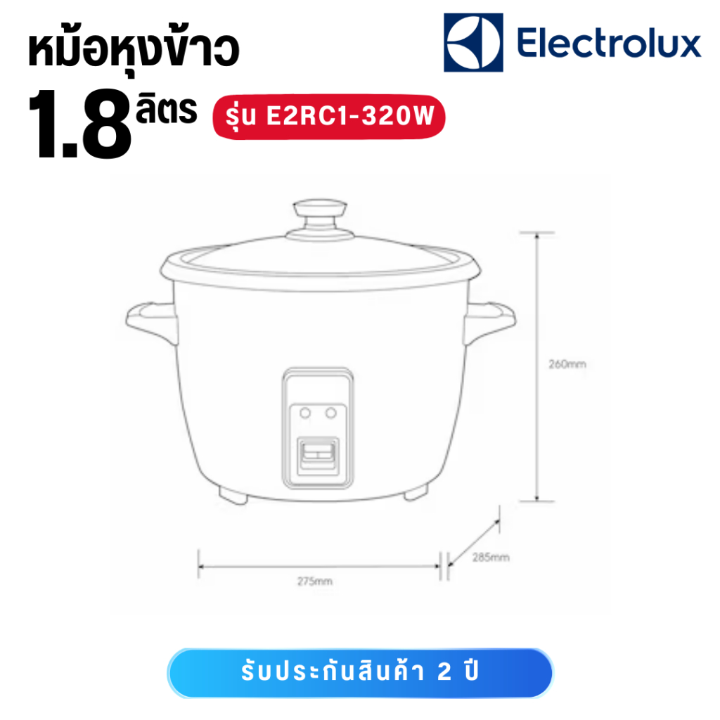 ELECTROLUX หม้อหุงข้าว 1.8 ลิตร ฝาแก้ว รุ่น E2RC1-320W