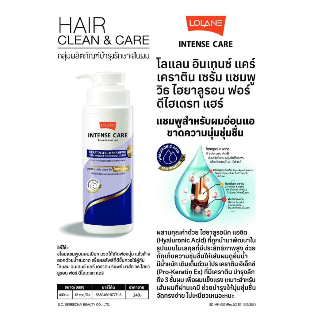 Lolane Intense Care Keratin Serum Shampoo 400 ml.โลแลน อินเทนซ์ แคร์ เคราติน เซรั่มแชมพู