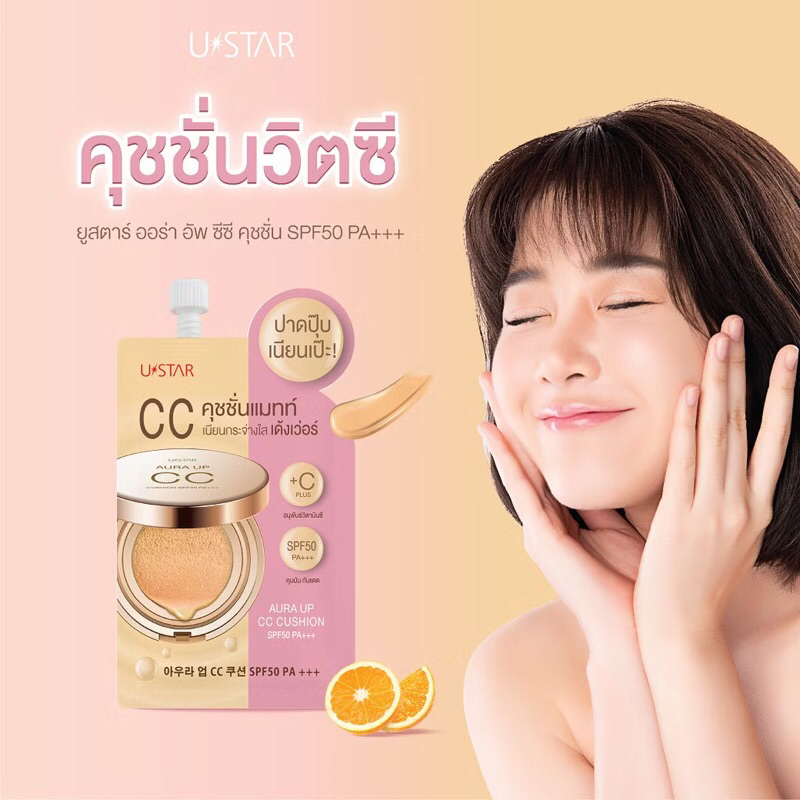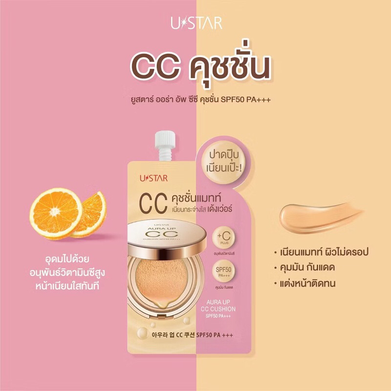 Ustar Aura Up CC Cushion SPF50 PA+++ ( ซีซี คุชชั่น ) ผิวเด้งเว่อร์ รวมพลังขั้นเทพ CC + Vit C