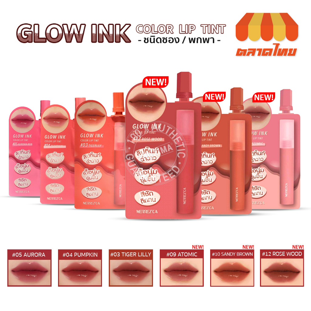 แบบซอง ลิป เมอร์เรซกา โกลว์ อิงค์ คัลเลอร์ ลิปทินท์ Merrezca Glow Ink Color Lip Tint 2 ml.