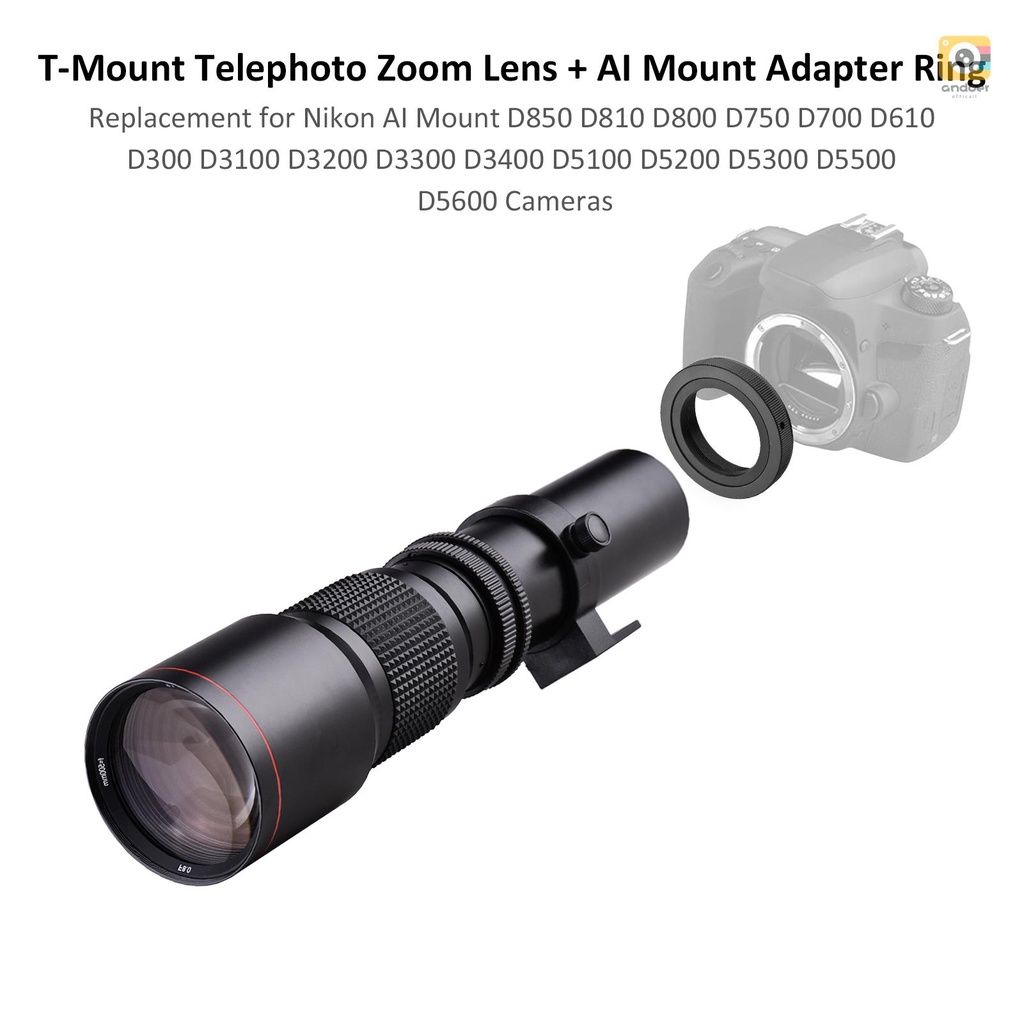 Camera Super Telephoto Lens 500mm F/8.0-32 Manual Zoom T-Mount + 2X 500mm Teleconverter Lens + T2-AI Adapter Ring Replacement for D850 D810 D800 D750 D700 D610 D300 D3100 D32