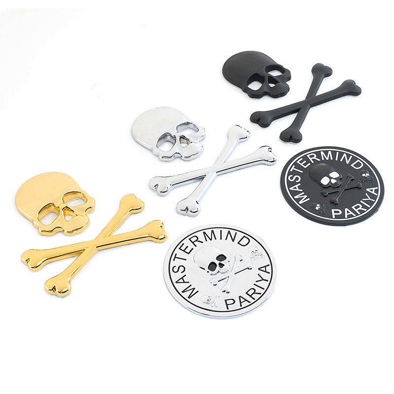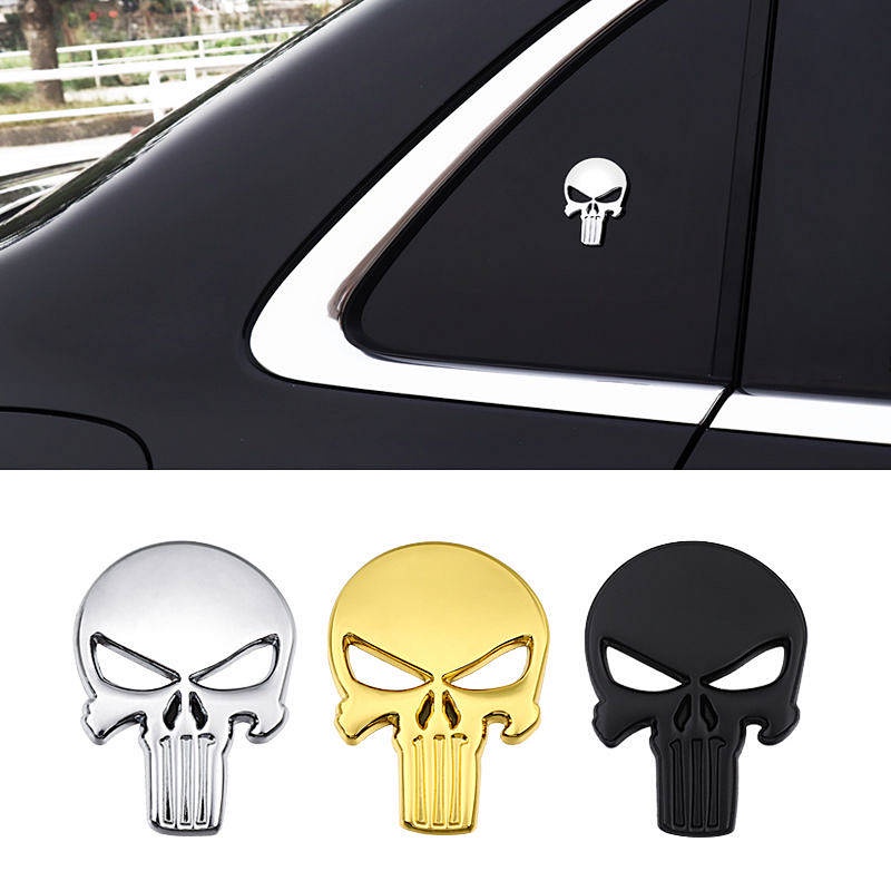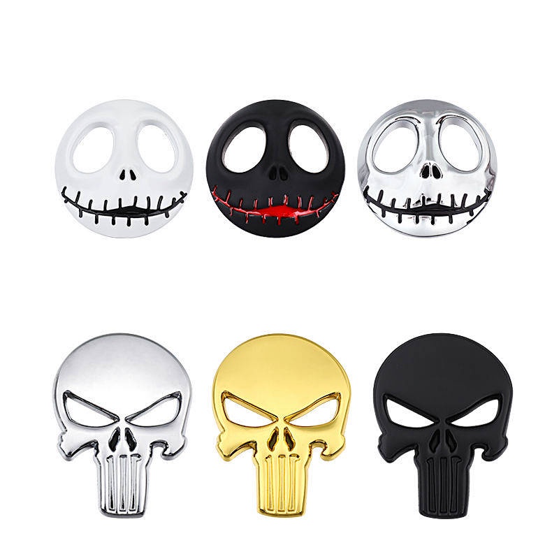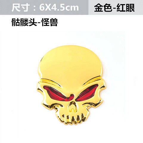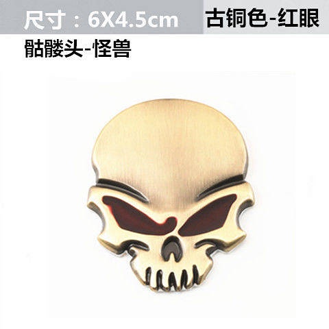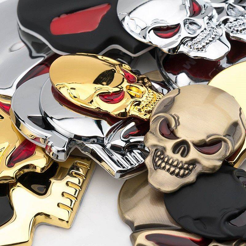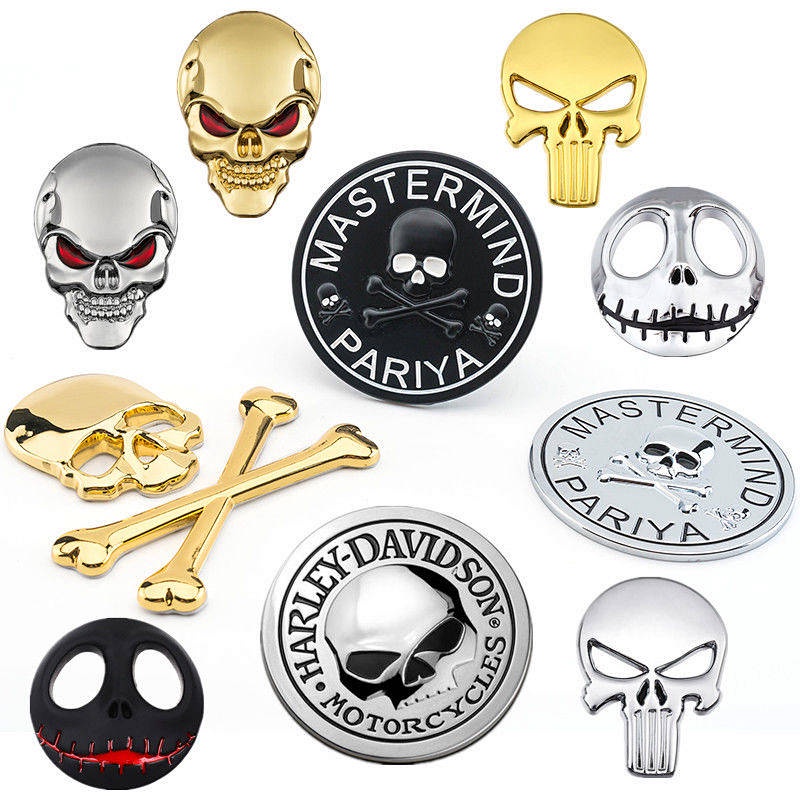 Car Personality Metal Skull Head Car Logo Wansheng Harley Skull Bumper Stickers Rear Car Badge Side Seam Label Head Logo Car Body Sticker UbAZ