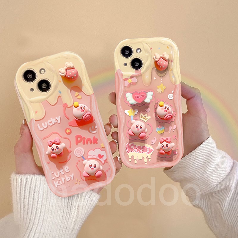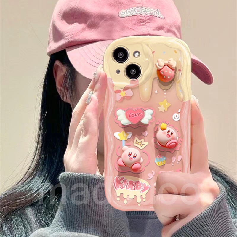 Casing Redmi Note 14 13 Pro+ 12S 4G 12 Pro Plus 5G 13C 12C A1 A2 A3 11S 11 10C 10 9T 9C 9A POCO X6 X5 M6 C65 Cream Edge Cute Cartoon HandWork 3D Doll Kirby Fine Hole Tpu Shockproof Protection Soft Phone Case Full Back Cover 1NY 52