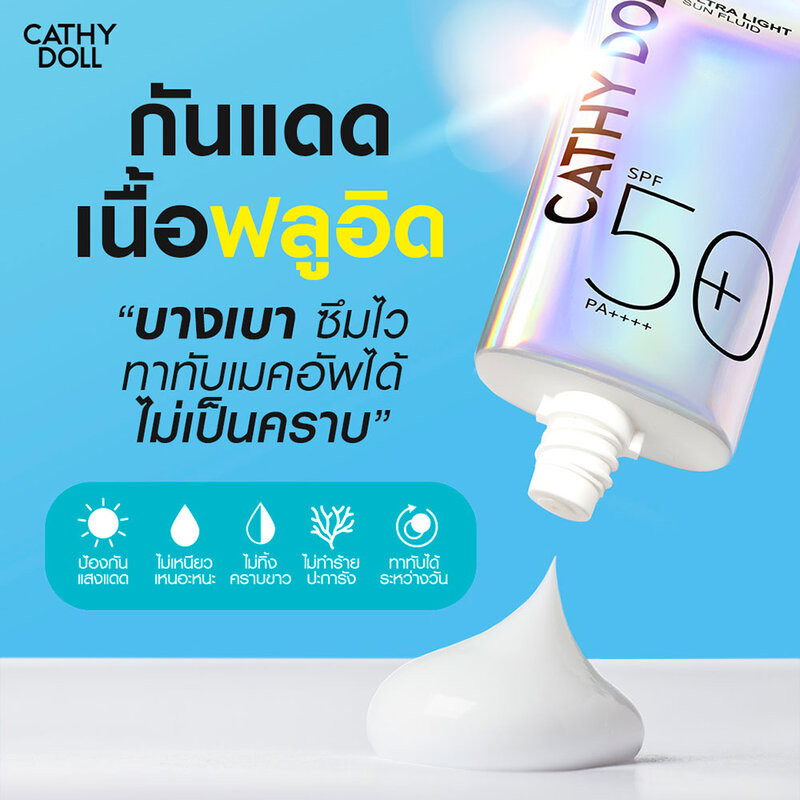 Cathy Doll Ultra Light Sun Fluid SPF50+ PA++++ 70ml ครีมกันแดดเนื้อฟลูอิด สูตรสำหรับออกแดดแรง.