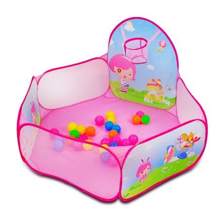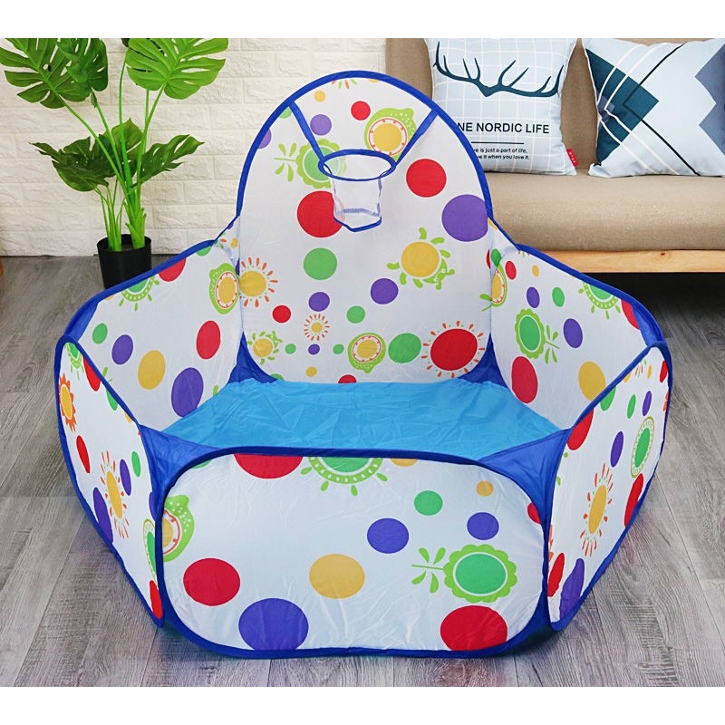 บ่อบอลพับได้ เต้นท์เด็กบ้านบอลลายจุด น่ารัก สำหรับเด็ก มีตาข่ายนิรภัยสำหรับการมองเห็นการเล่นเด็ก บ่อบอลพร้อมแป้น 120cm