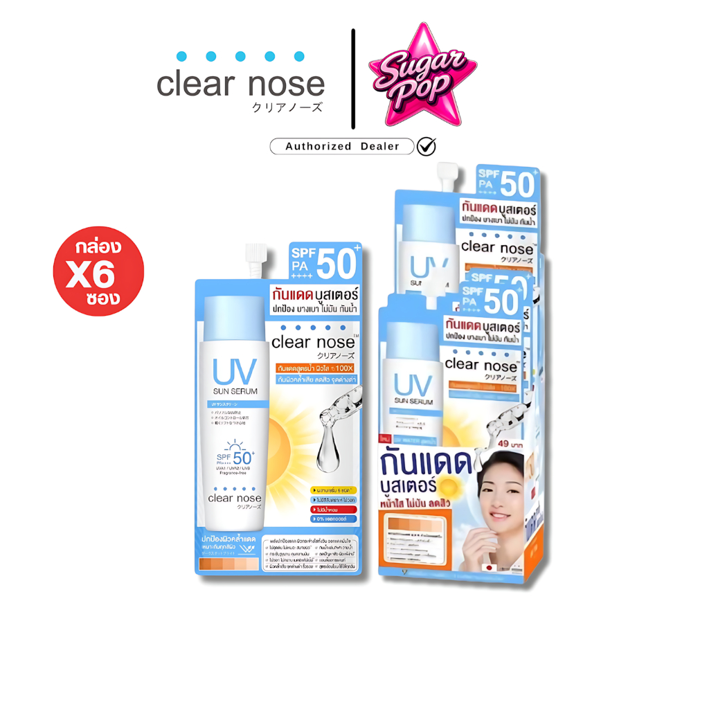 (6ซอง/กล่อง) Clear nose UV กันแดดบูสเตอร์ ยูวี ซัน เซรั่ม SPF50+ PA++++ บางเบา กันน้ำ ทาหน้า [2323]