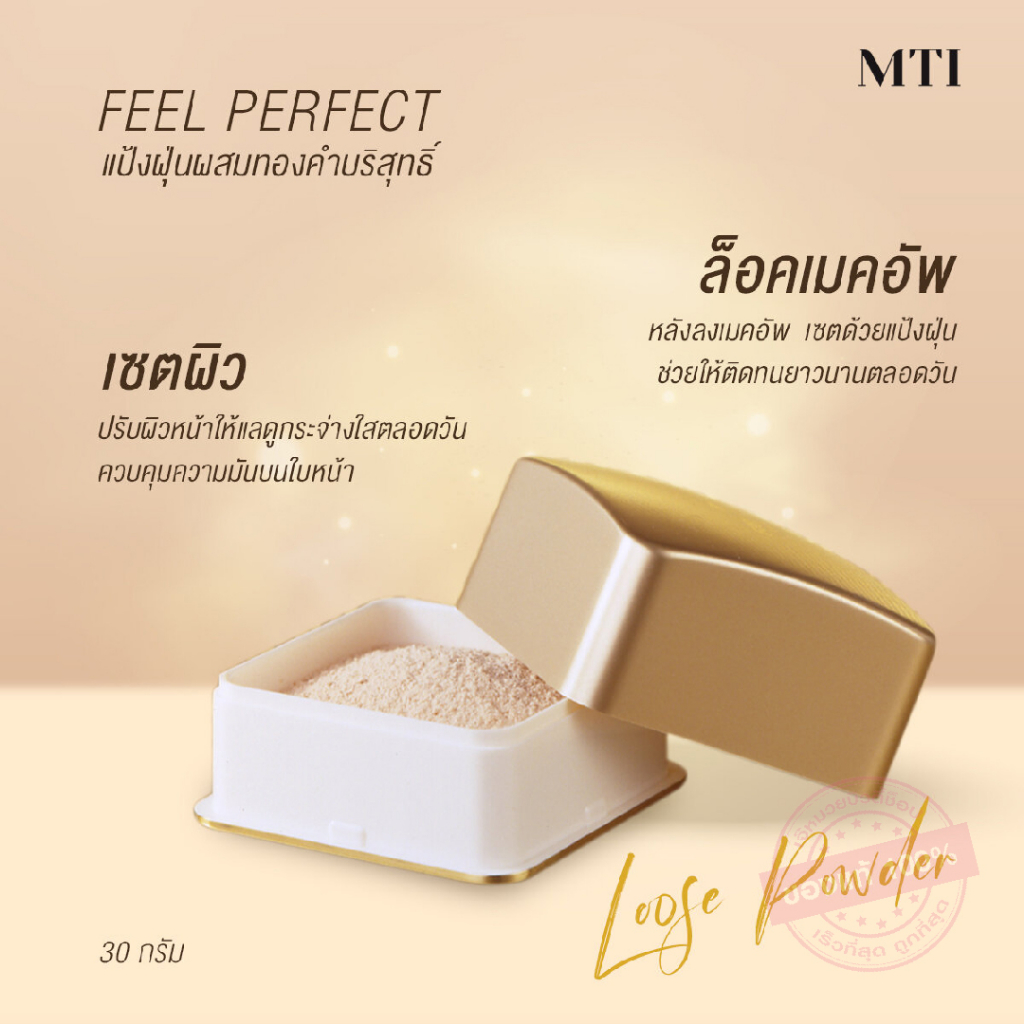 MTI Feel Perfect LOOSE POWDER เอ็มทีไอ ฟิล เพอร์เฟ็คท์ ลูส พาวเดอร์ แป้งฝุ่น โปร่งแสง เนื้อละเอียด คุมมันยาวนาน