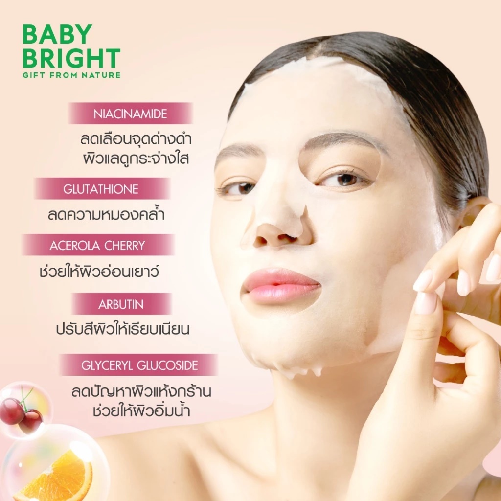 【1ชิ้น】Baby Bright แผ่นมาสก์หน้า【Whitening ชมพู กลาสสกินมาสก์ชีท】10x glass skin mask sheet 20g