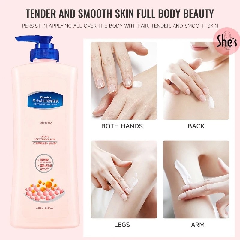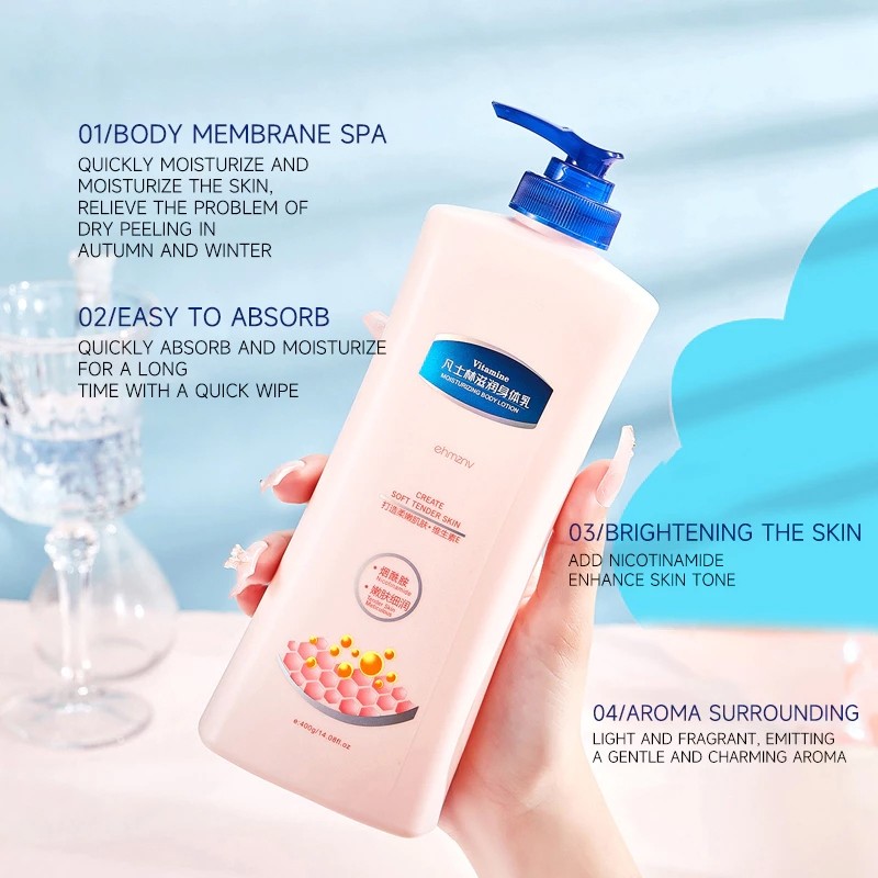 โลชั่นวาสลีน โลชั่นน้ำหอม Vitamineบำรุงผิวกาย โลชั่นน้ำหอม สูตรใหม่ ให้ความชุ่มชื้นผิวเนียนนุ่มใส 400ml Body Lotion