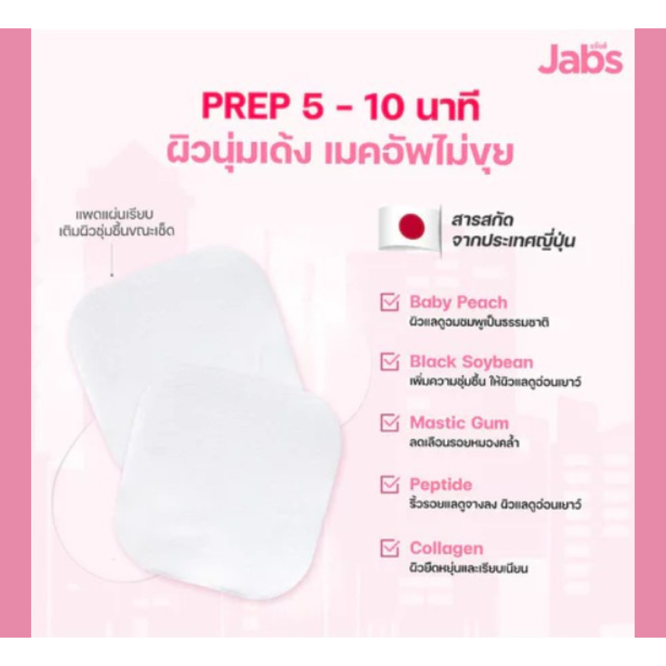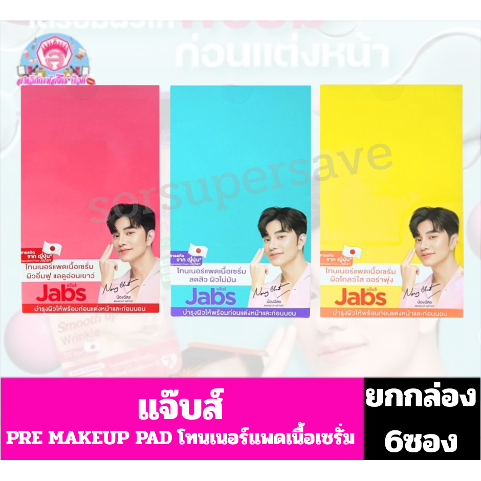 แจ๊บส์ โทนเนอร์แพดเนิ้อเซรั่ม Jabs Pre makeup pad (ปริมาณสุทธิ 4แผ่น/ซอง)***ยกกล่อง6ซอง***