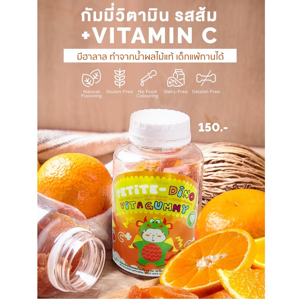 Petite-Dino Gummy Vitamin C Orange Flavor 120 g. - ขนมเยลลี่เพ็กทินผสมน้ำผลไม้ 6% และ วิตามินซีและซิงค์ รสส้ม
