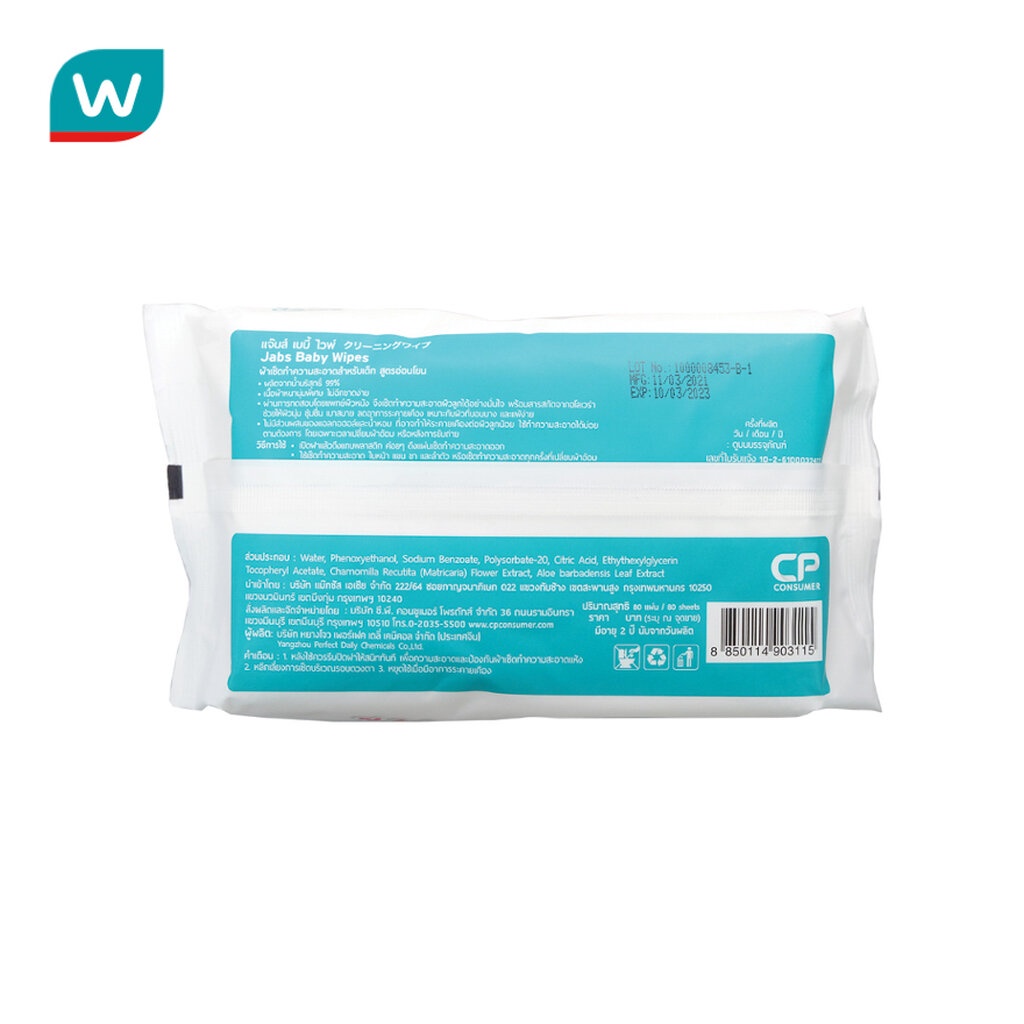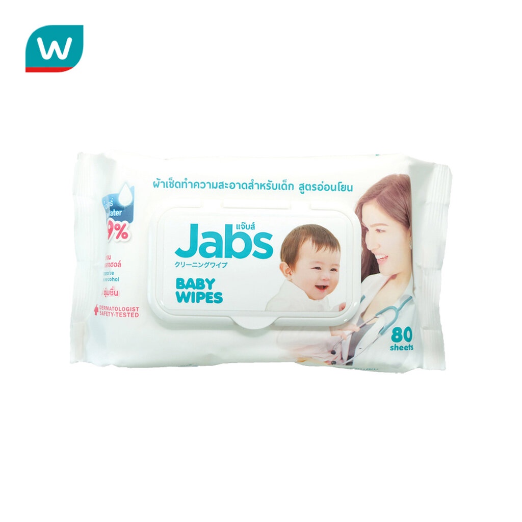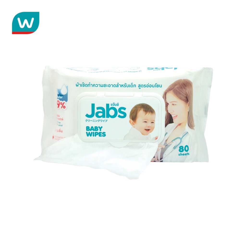 Jabs แจ๊บส์ ผ้าเช็ดทำความสะอาดสำหรับเด็ก สูตรอ่อนโยน 80 ชิ้น