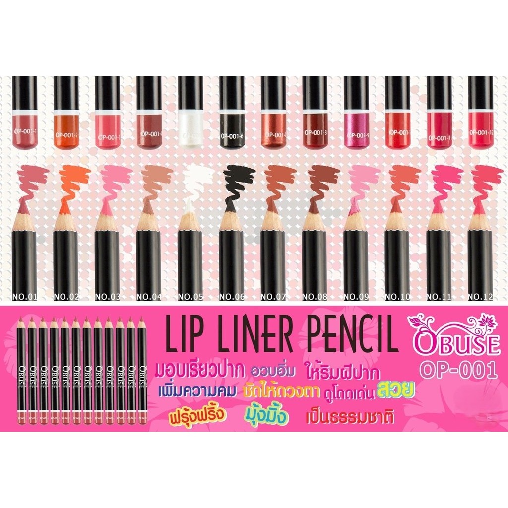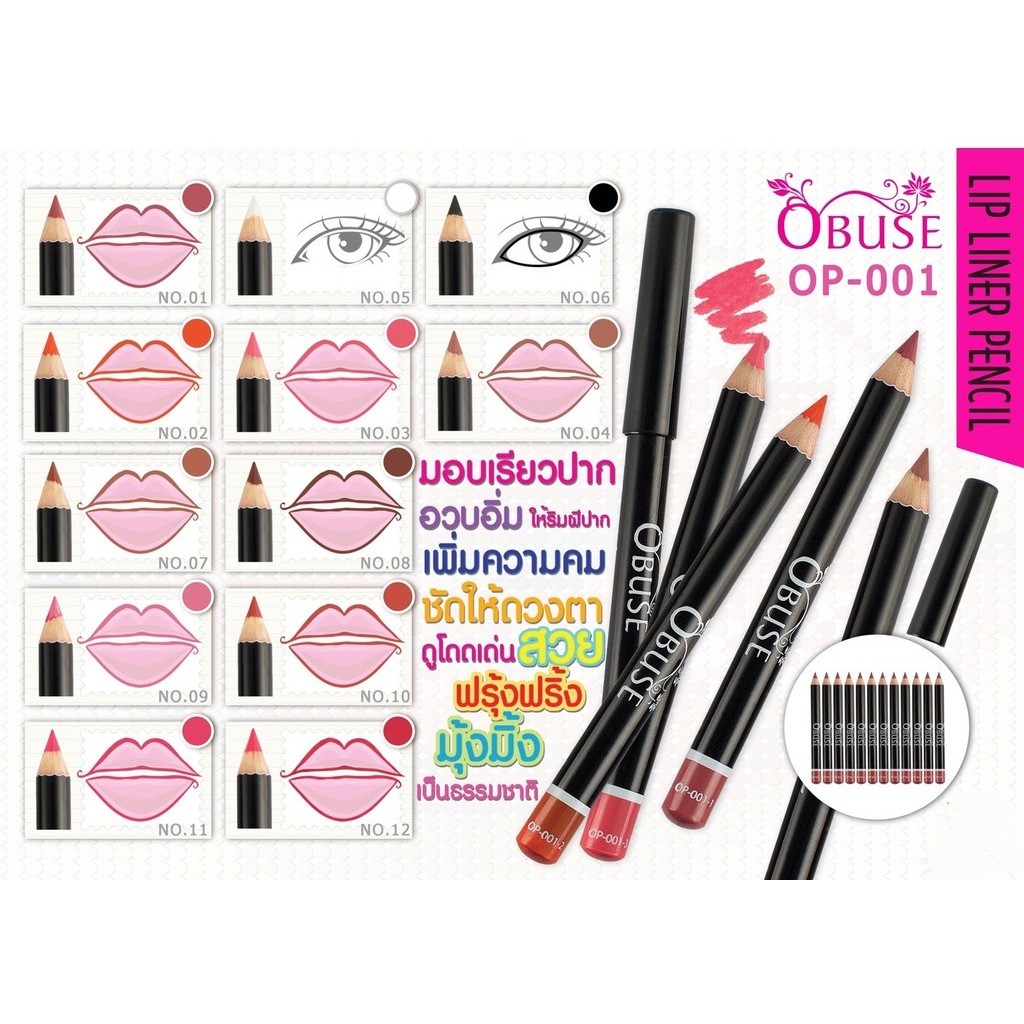Obuse Lips Liner Pencil 0.8g OP-001 โอบิวซ์ ดินสอเขียนขอบปาก แท่งเล็ก