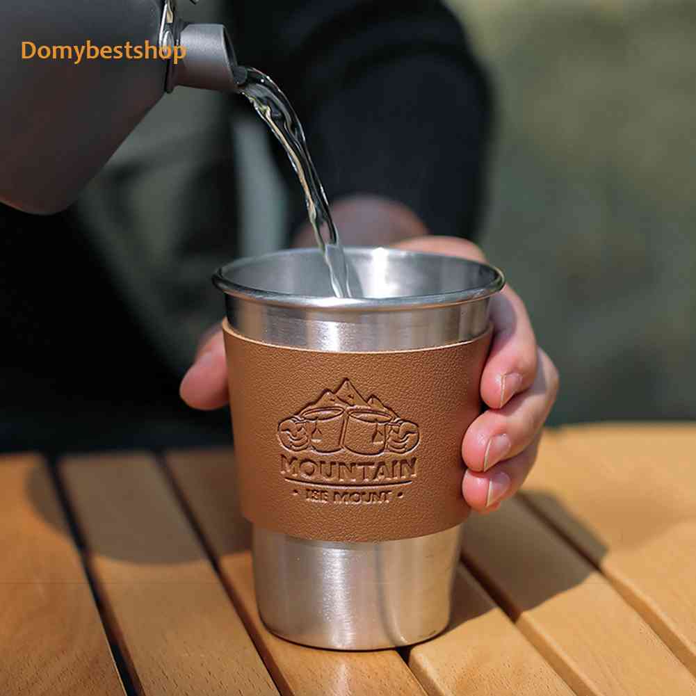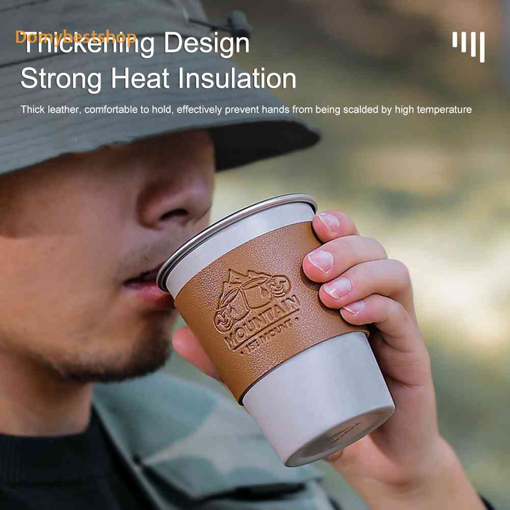 [Domybestshop.th] ฝาครอบแก้วกาแฟ หนัง PU กันลื่น แบบพกพา สําหรับเดินป่า ตั้งแคมป์