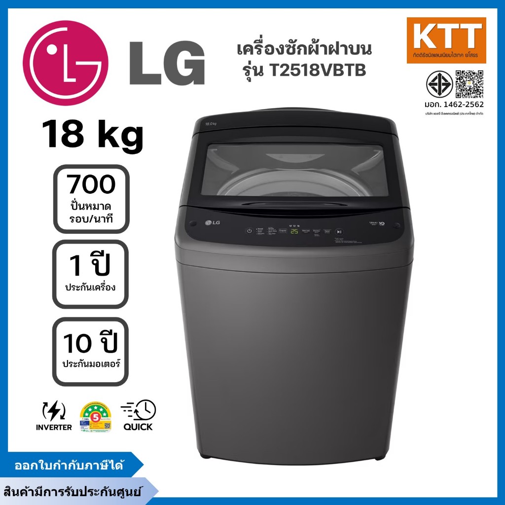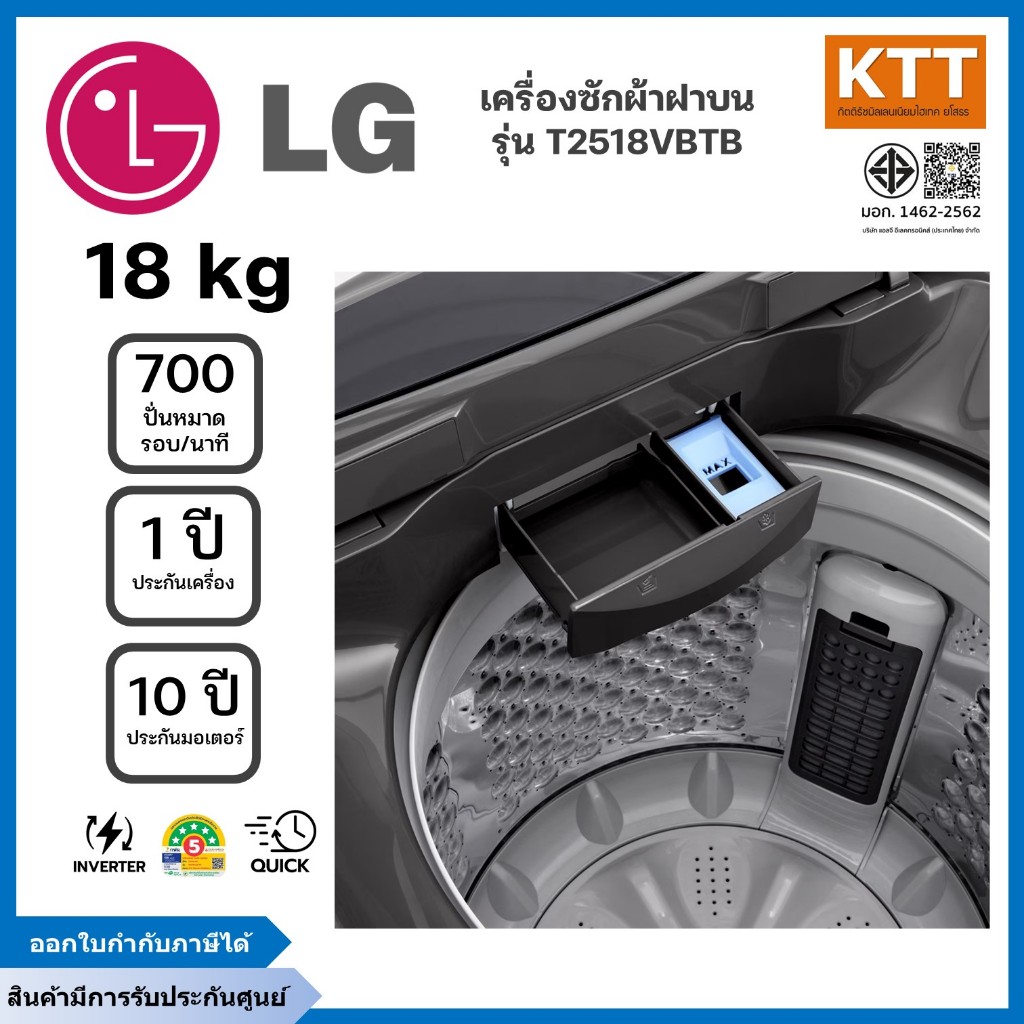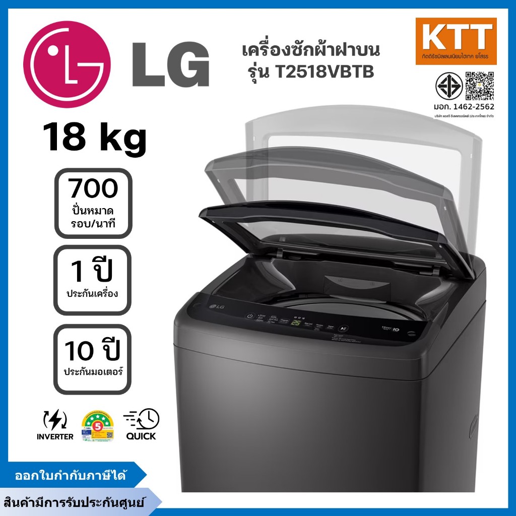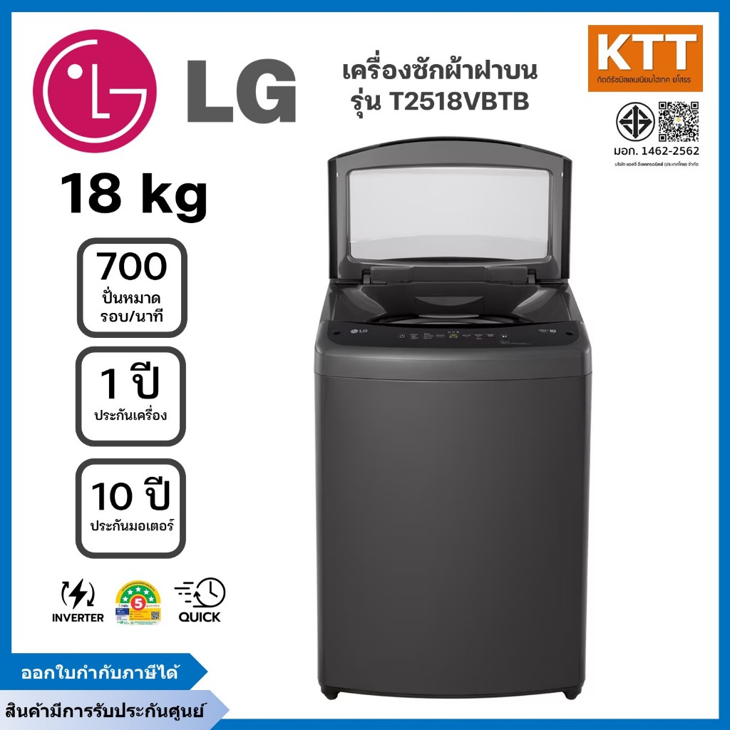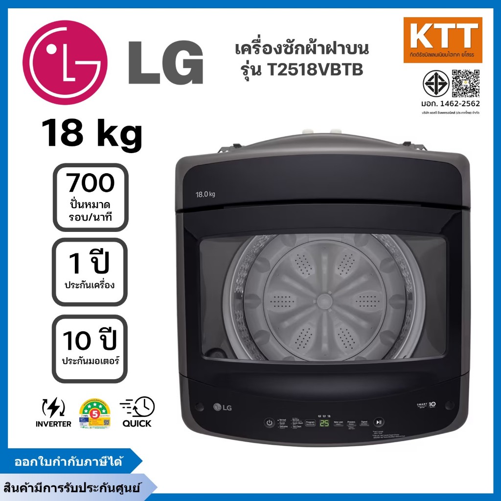 LG เครื่องซักผ้าฝาบน ซัก ขนาด 18 กก. รุ่น T2518VBTB ระบบ Smart Inverter สีดำ