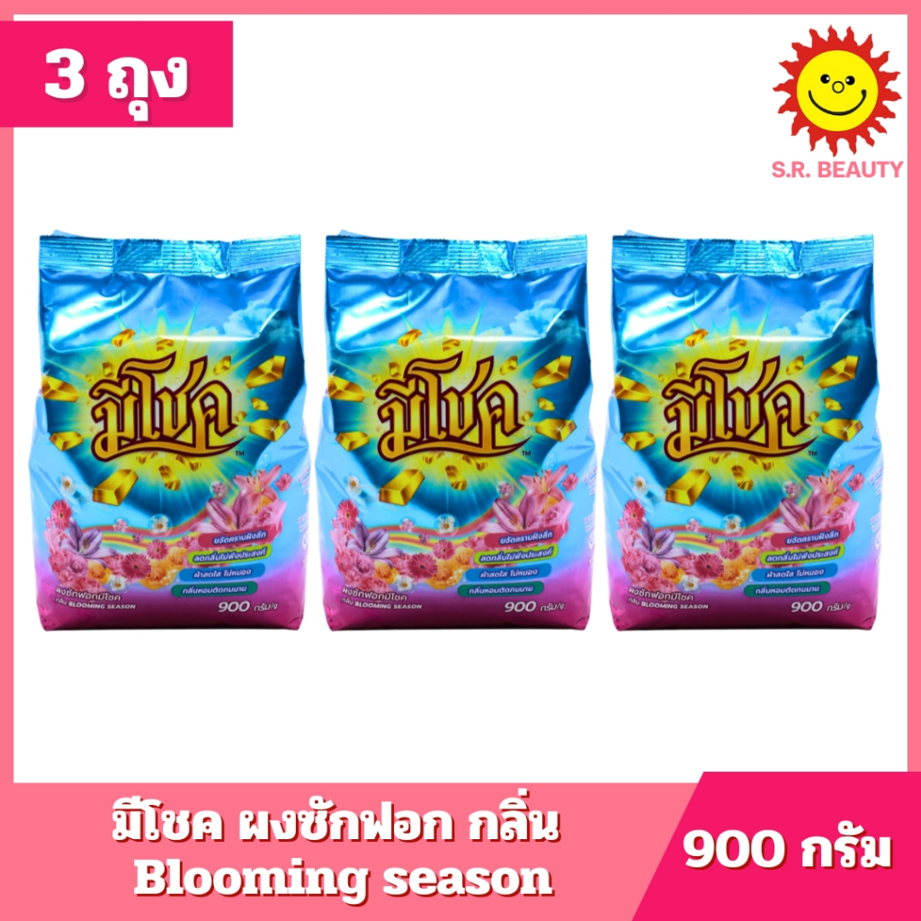 [ 3 ถุง ] มีโชค ผงซักฟอกกลิ่น Blooming Season ปริมาณ 900 กรัม x 3 ถุง