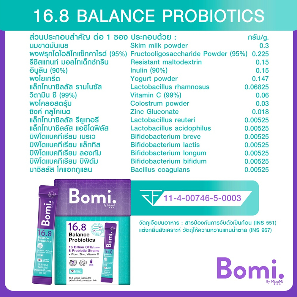BOMI 16.8 Balance Probiotics ผลิตภัณฑ์เสริมอาหาร 3g x 14 sachets
