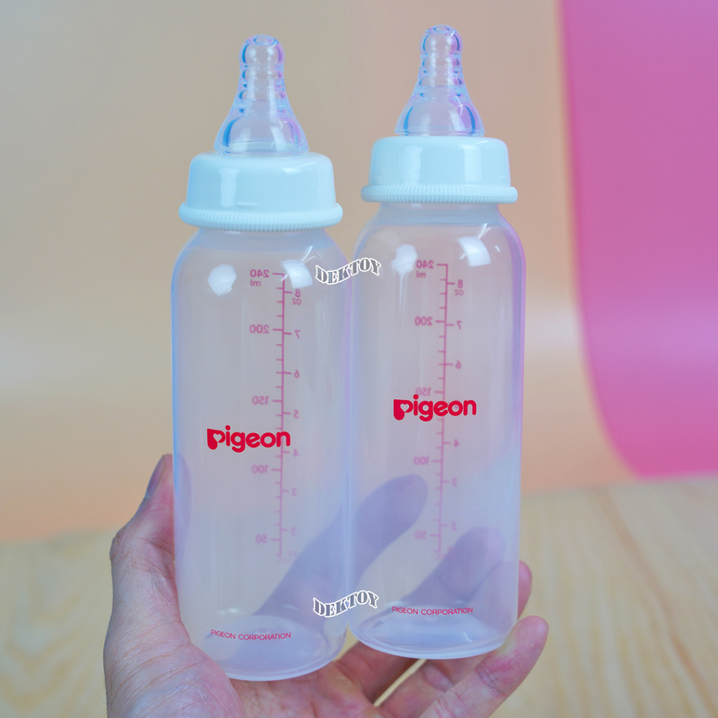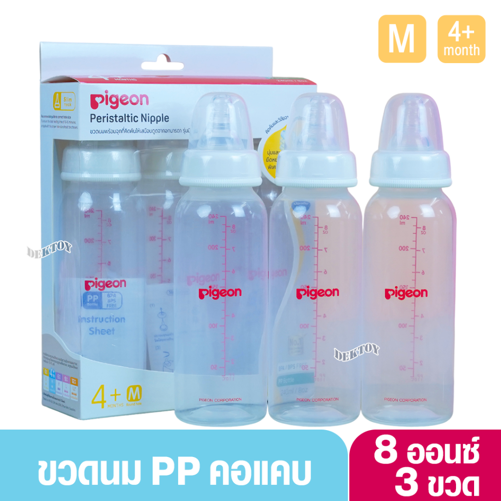 Pigeon พีเจ้น ขวดนมพีเจ้น PP 8 ออนซ์ คอมาตรฐาน พร้อมจุกนมเสมือนนมมารดา รุ่น มินิ size M แพ็ค 3 ขวด