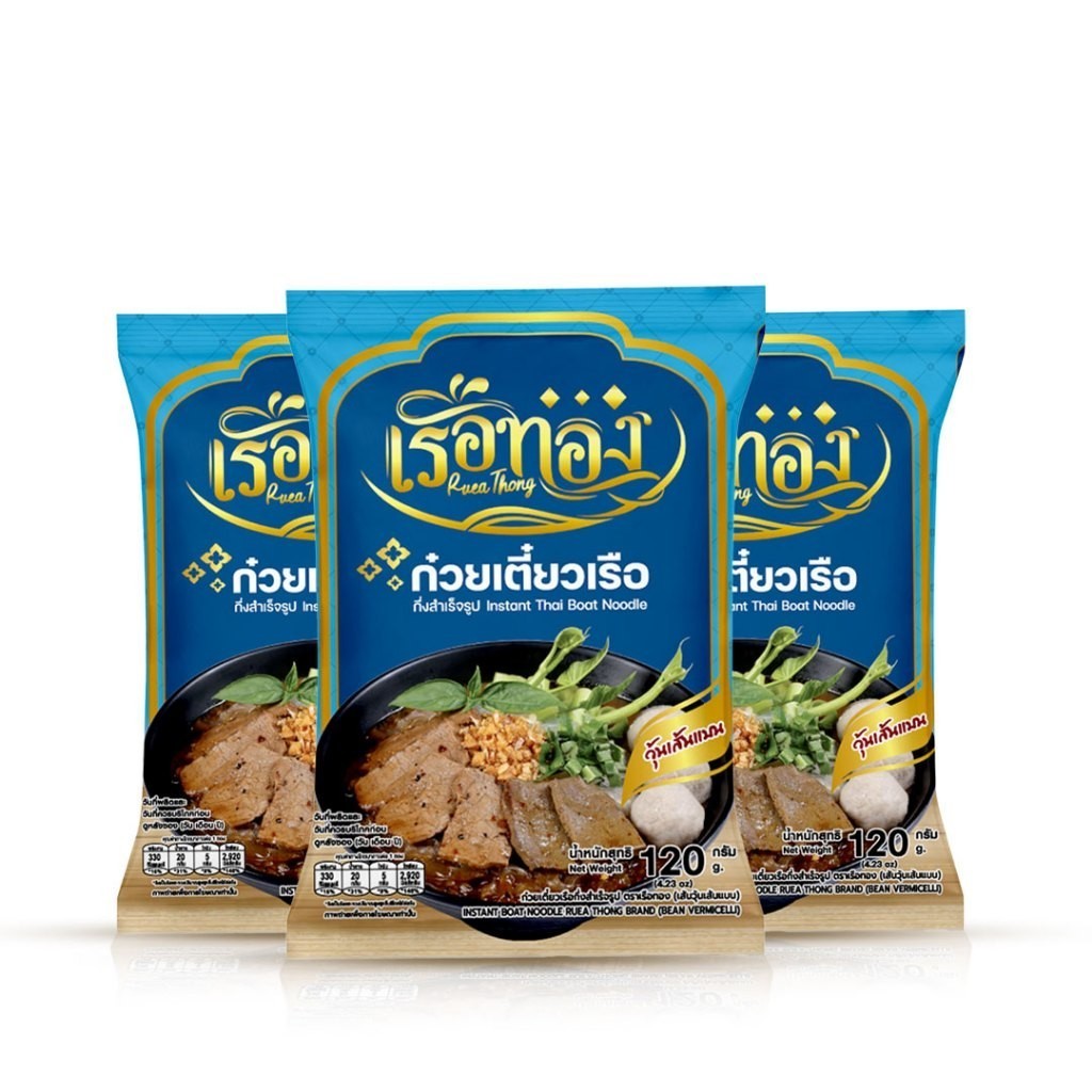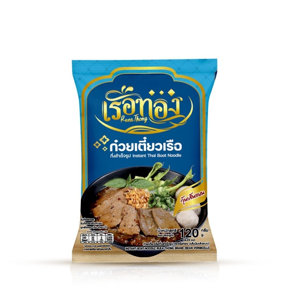 RUEATHONG เรือทอง ก๋วยเตี๋ยวเรือ กึ่งสำเร็จรูป เส้นวุ้นเส้นแบน เส้นเหนียวนุ่ม น้ำซุปเข้มข้น หอม อร่อย อิสลามทานได้