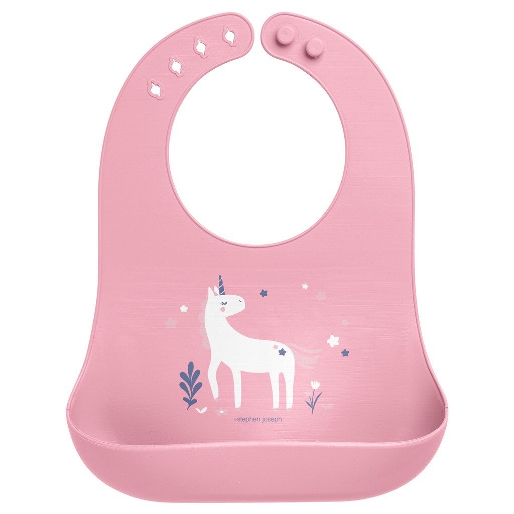 Stephen Joseph Baby ผ้ากันเปื้อนซิลิโคนพร้อมช่องเก็บเศษอาหาร ซิลิโคนฟู้ดเกรด BPA Free หนานุ่ม ทนความร้อนสูง