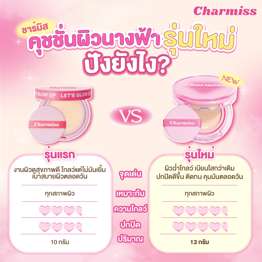 รุ่นใหม่!! CHARMISS Charming Glow Airy Cushion SPF50+ PA++++ ชาร์มิส คุชชั่น ผิวโกลว์ ปกปิด คุมมัน